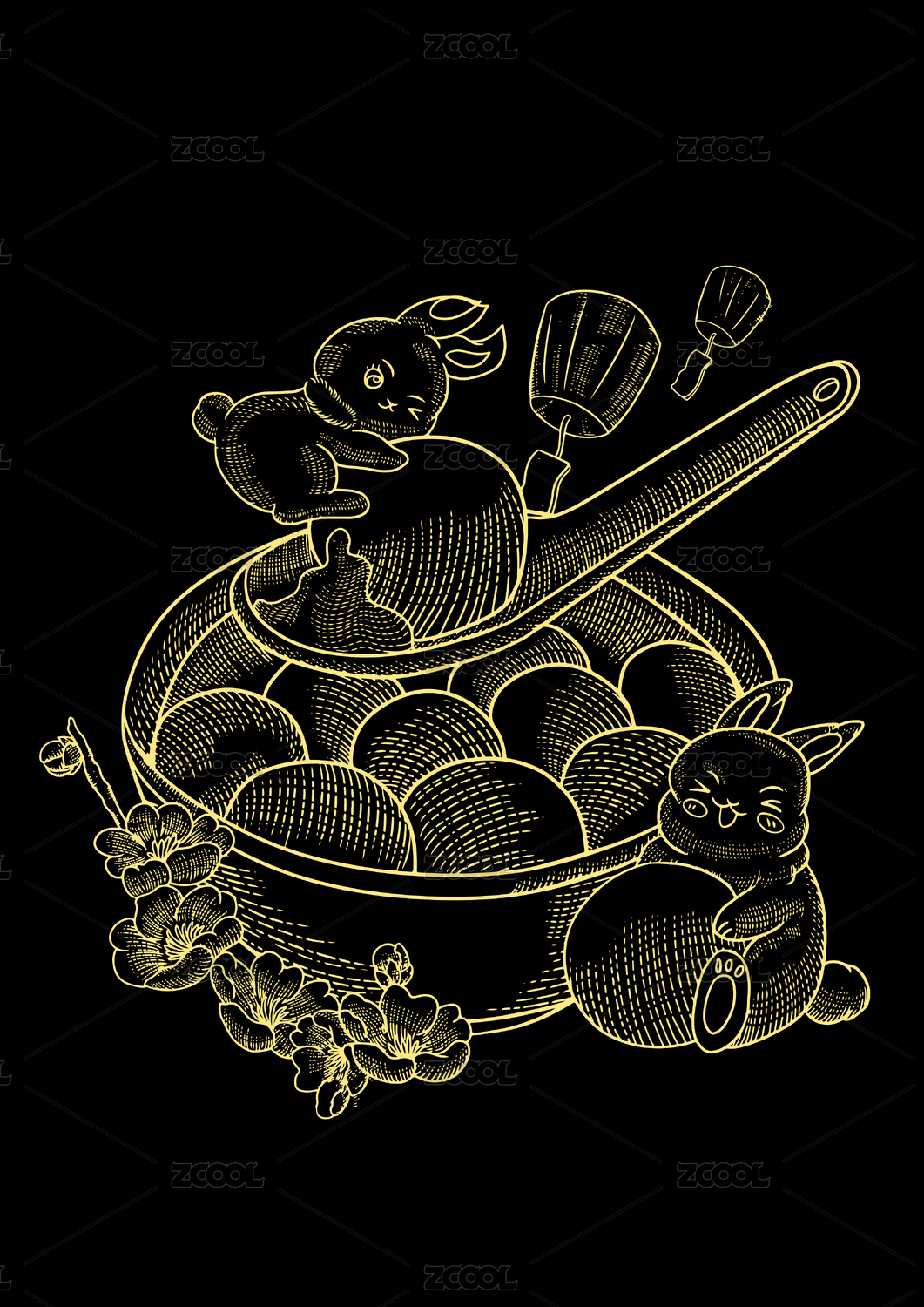 月饼素材元素线图