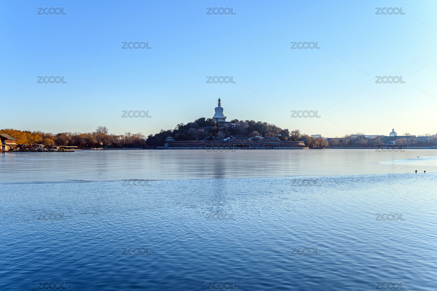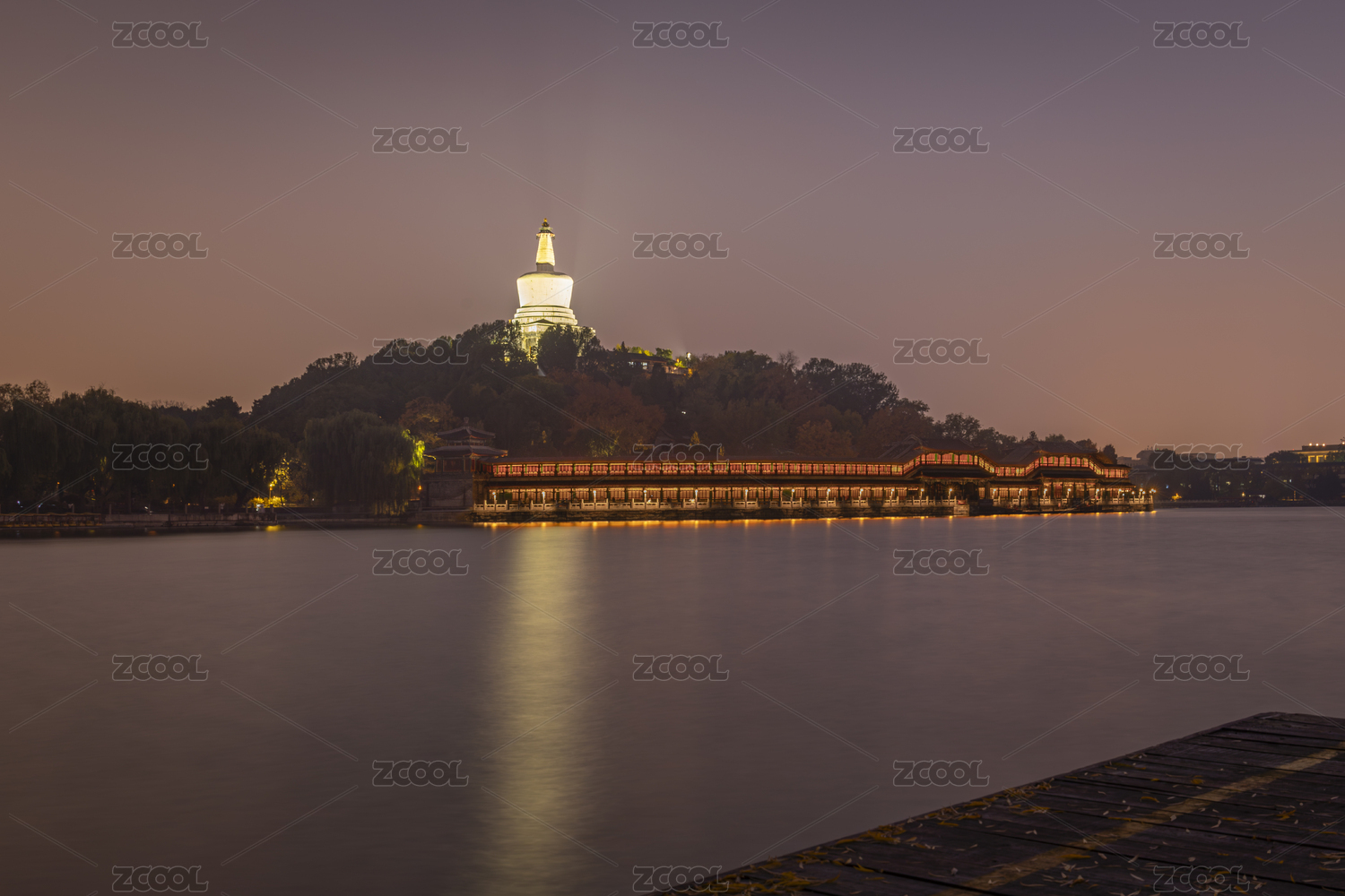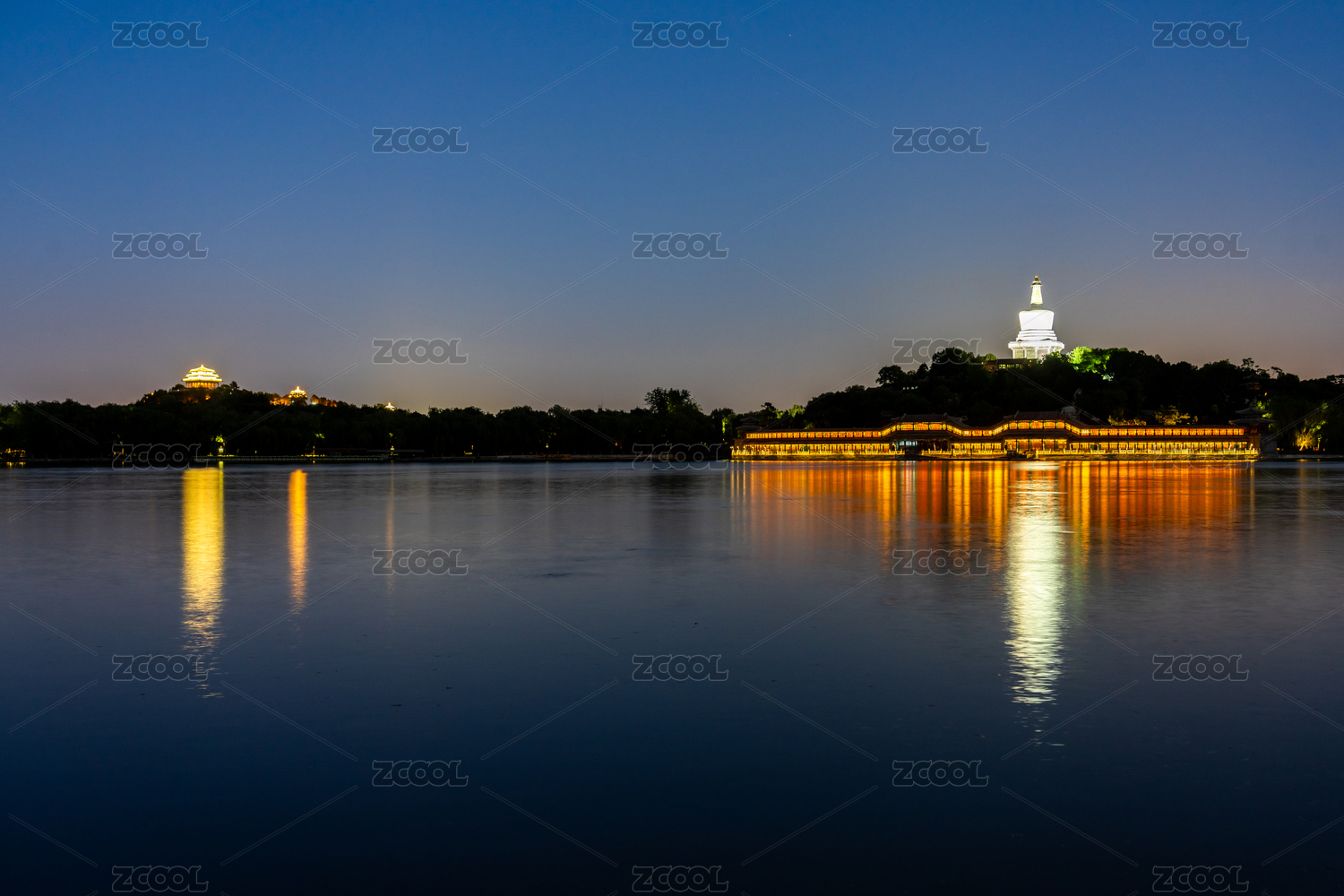 冬季,北海公园,蓝调,夜景,万春亭,中国尊,游廊,灯光,照明,园林