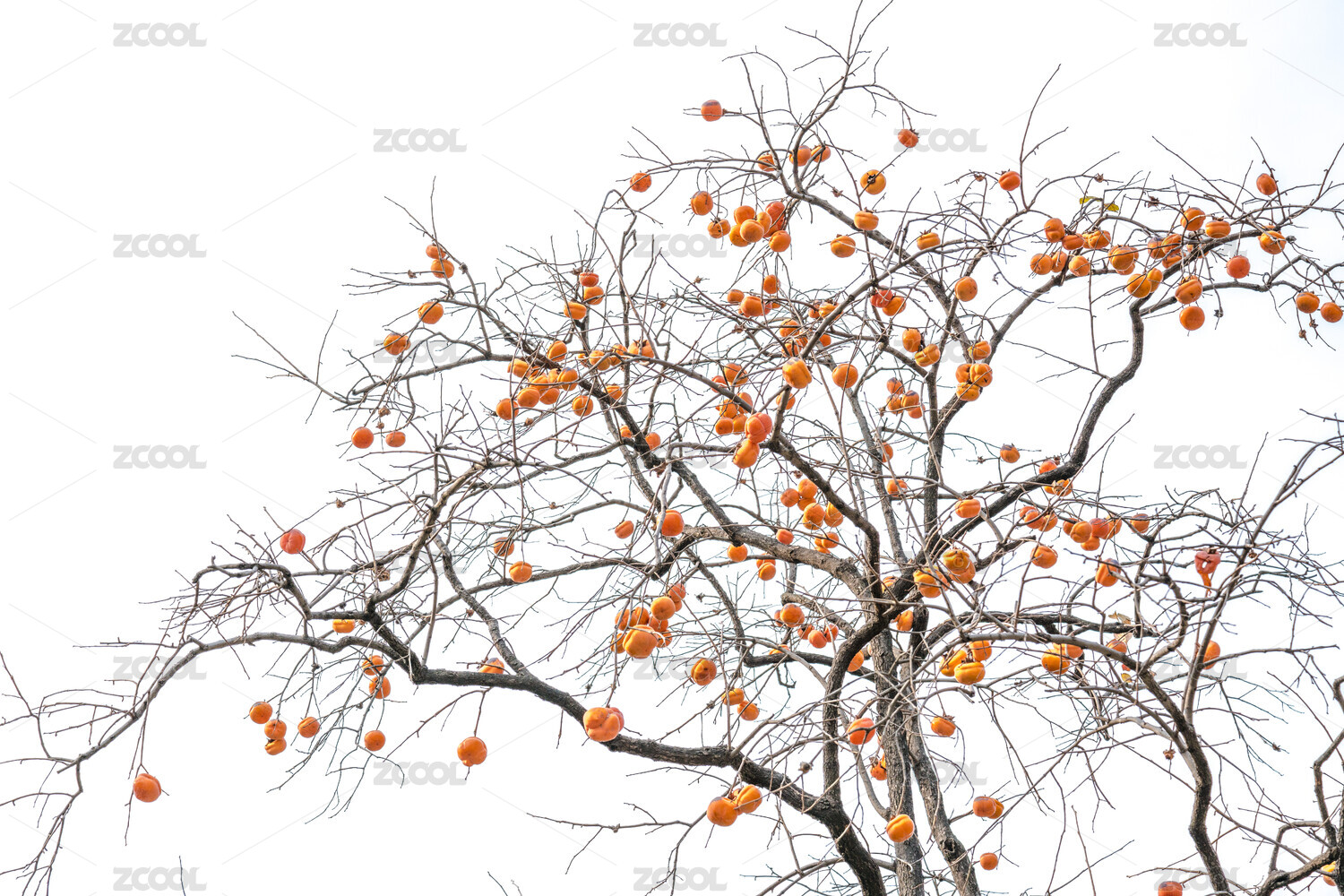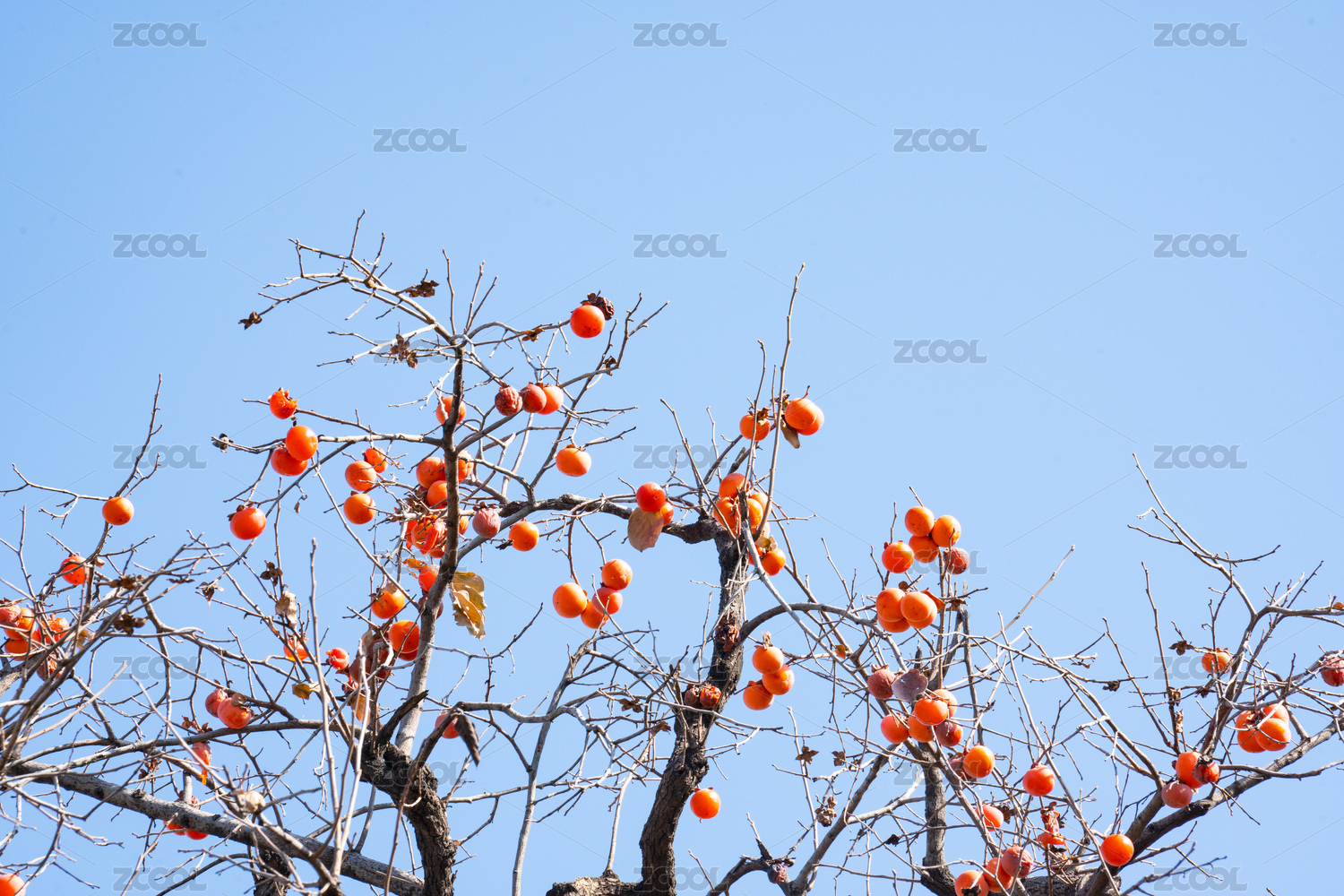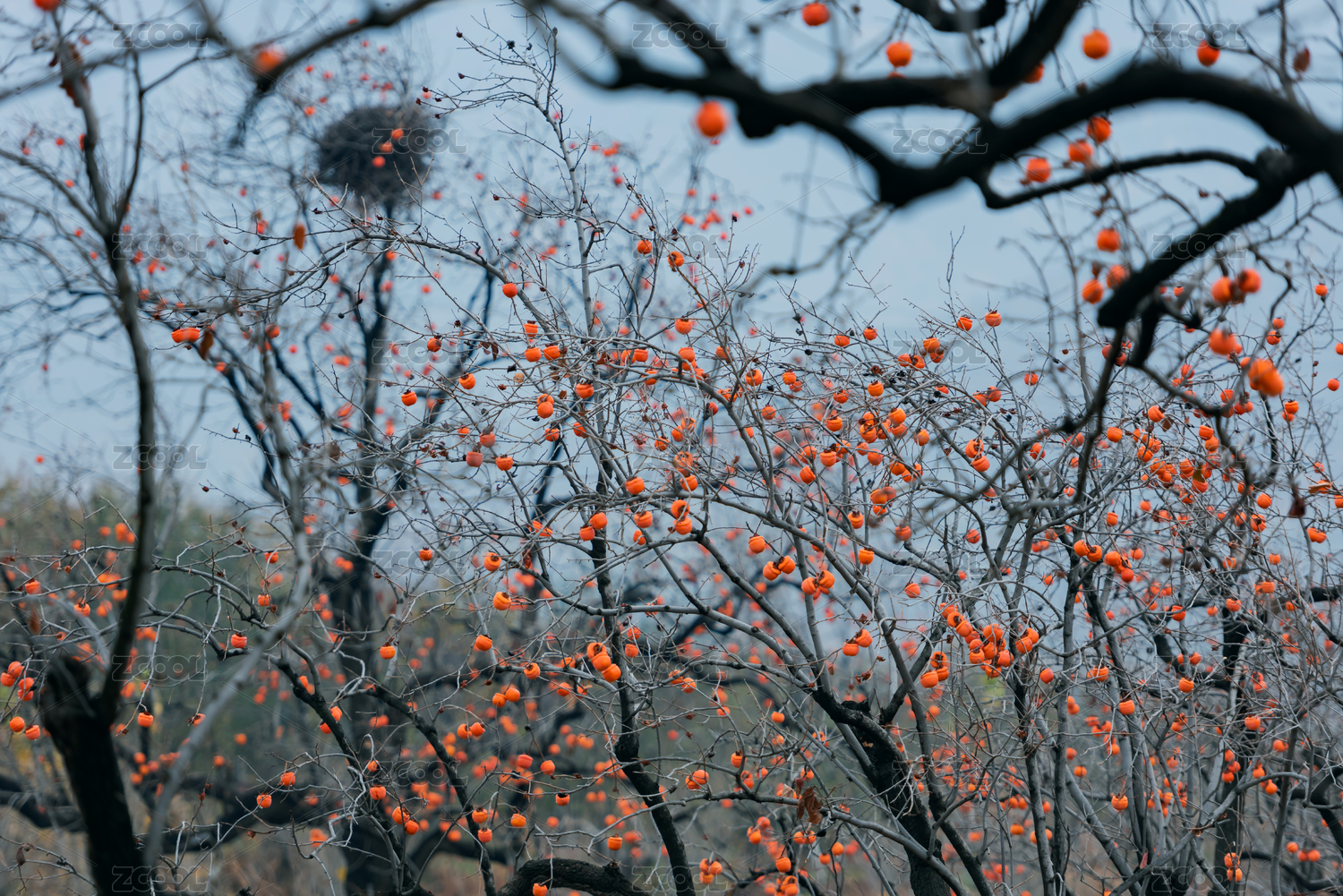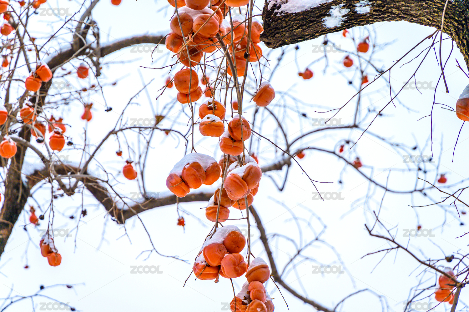 冬季,雪后,枝头,火红,柿子,树,户外,自然,无人,枝