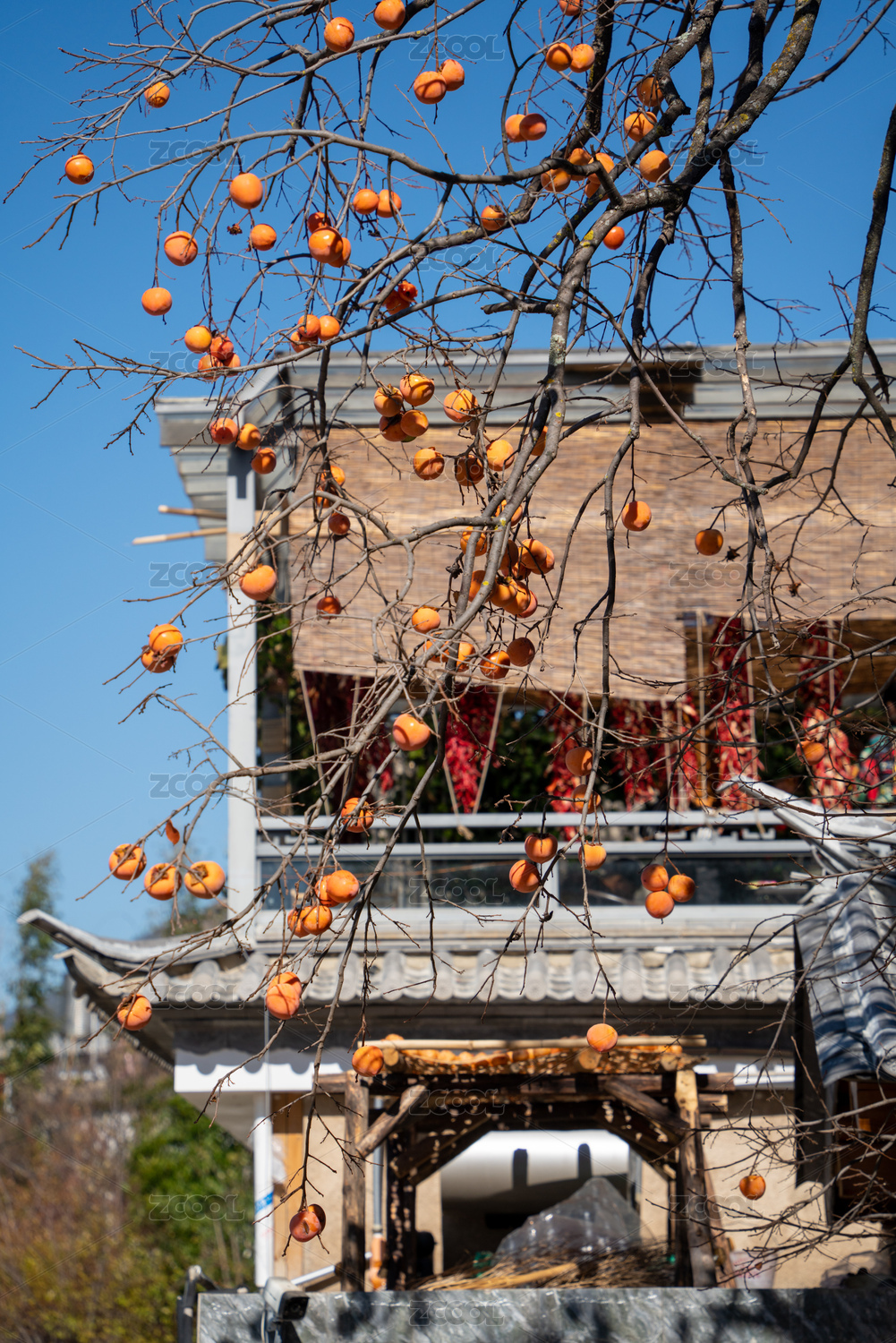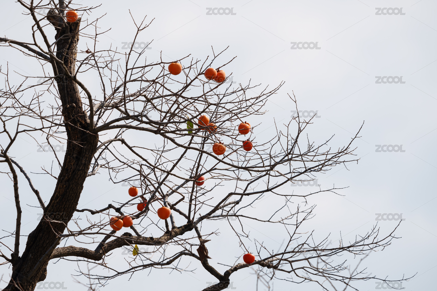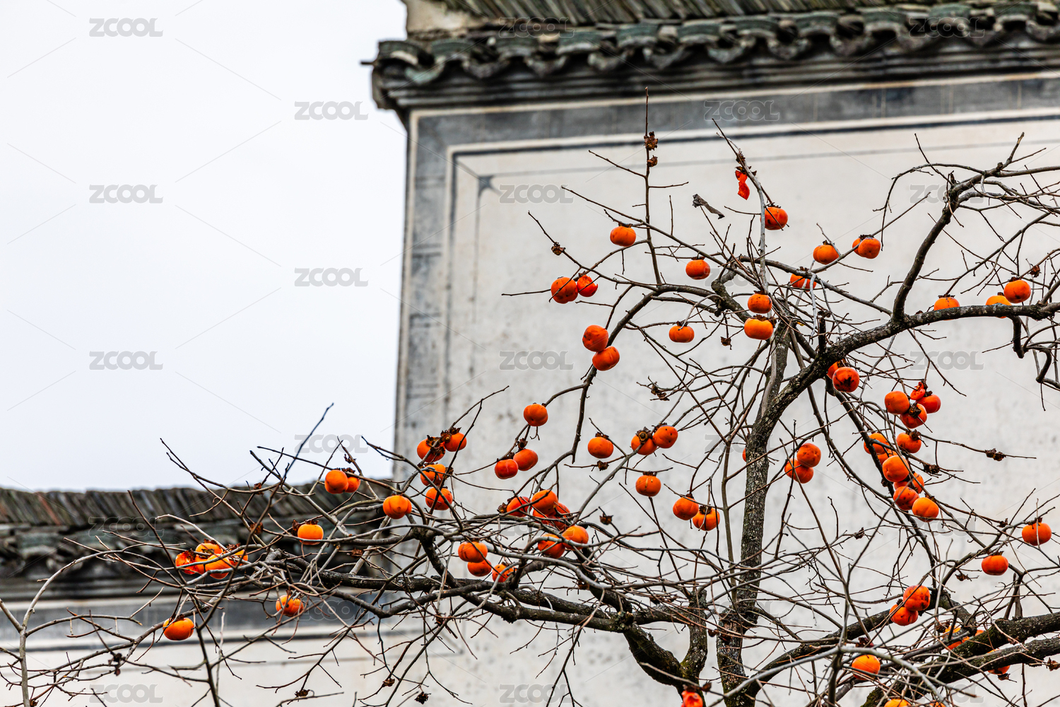 冬季,雪后,枝头,火红,柿子,树,户外,自然,无人,枝
