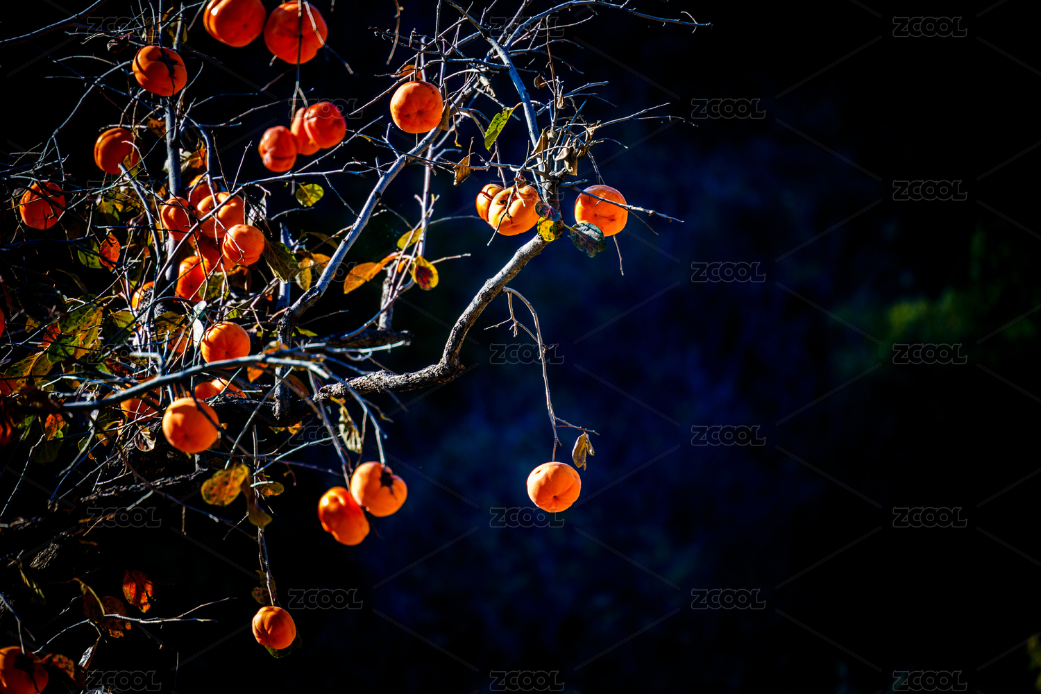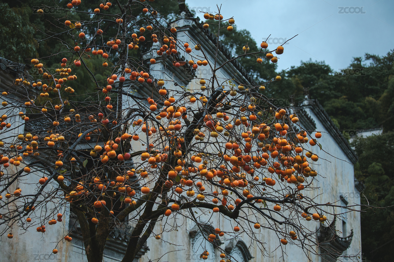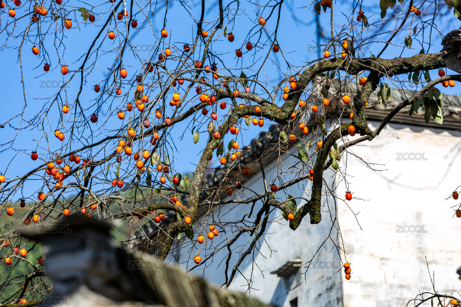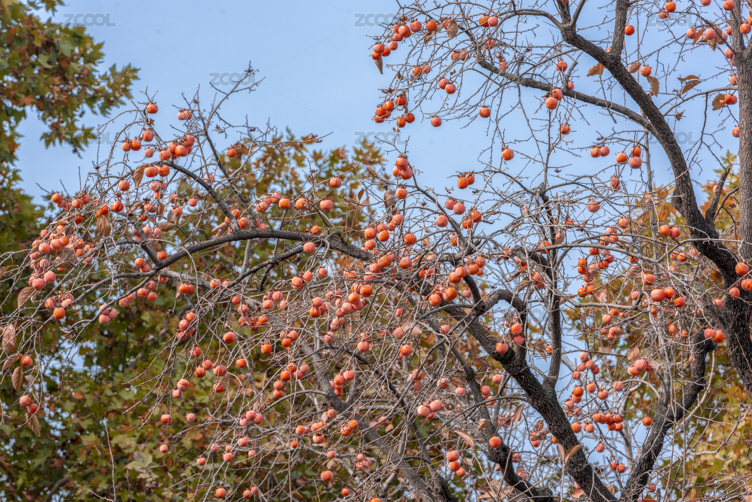 冬季,雪后,枝头,火红,柿子,树,户外,自然,无人,枝