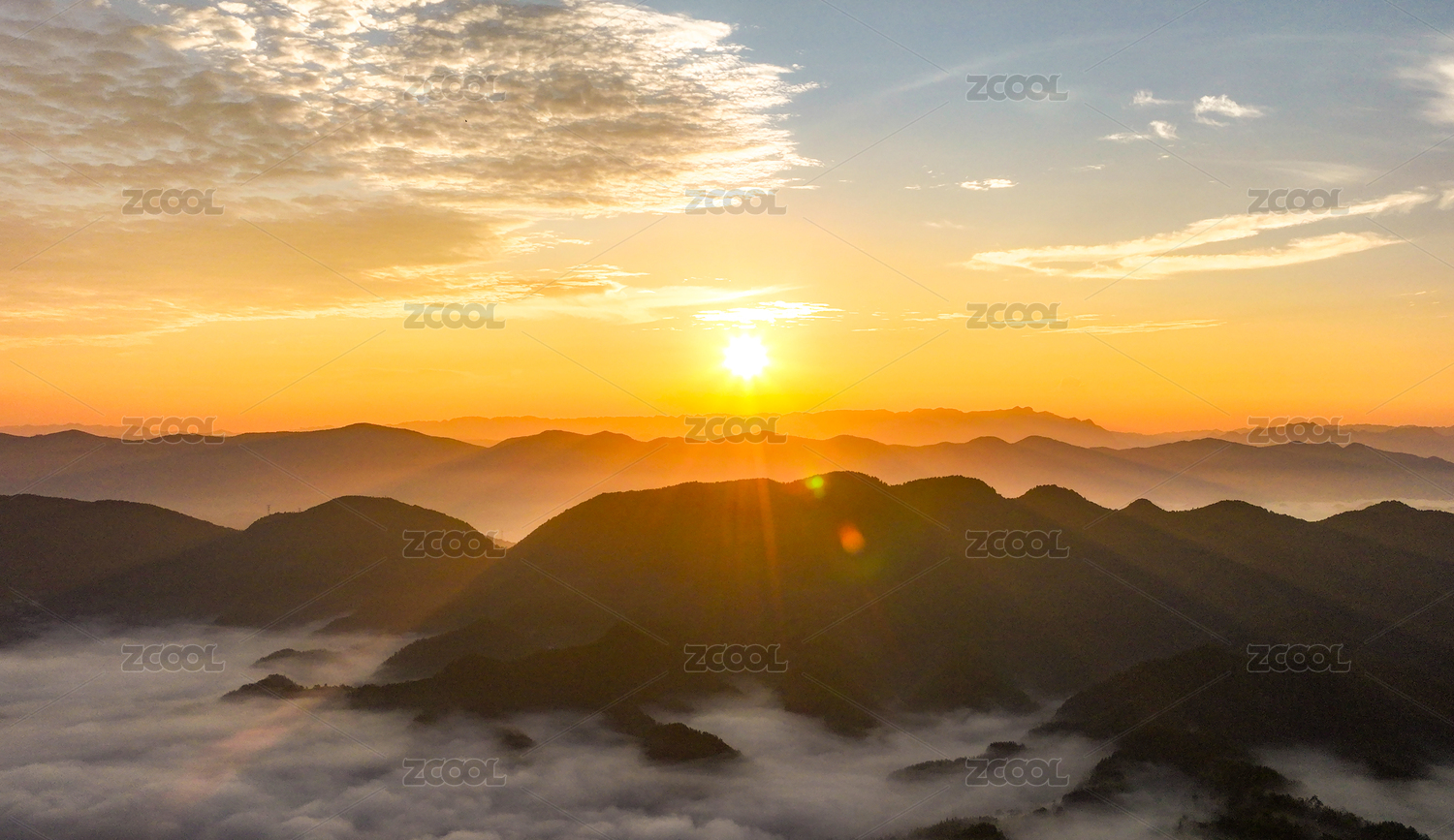 杭州临安大明山牵牛岗群山日出朝霞自然风景
