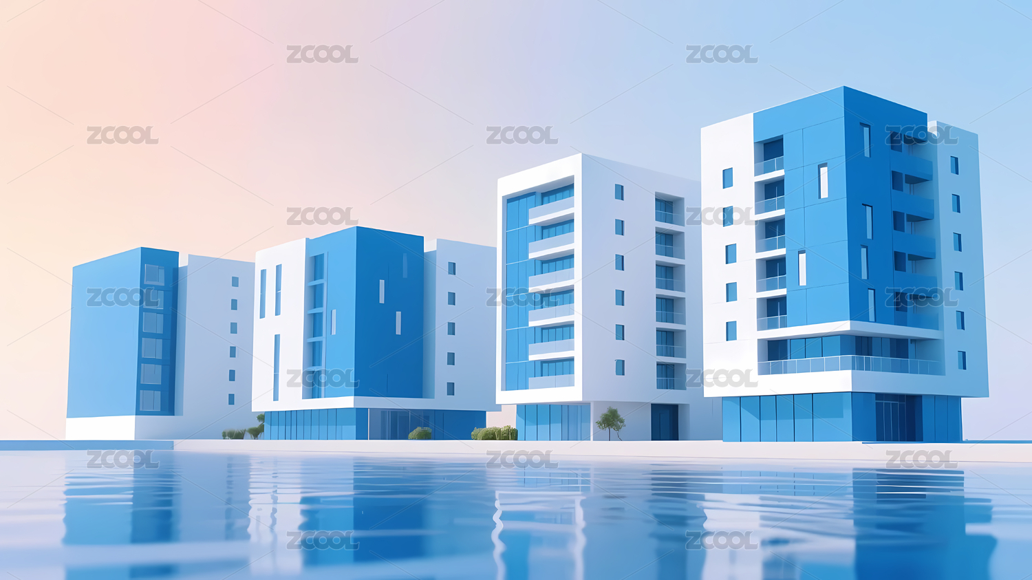 现代高层建筑粉蓝渐变