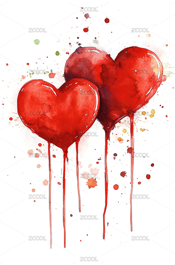 水彩画心形滴血艺术