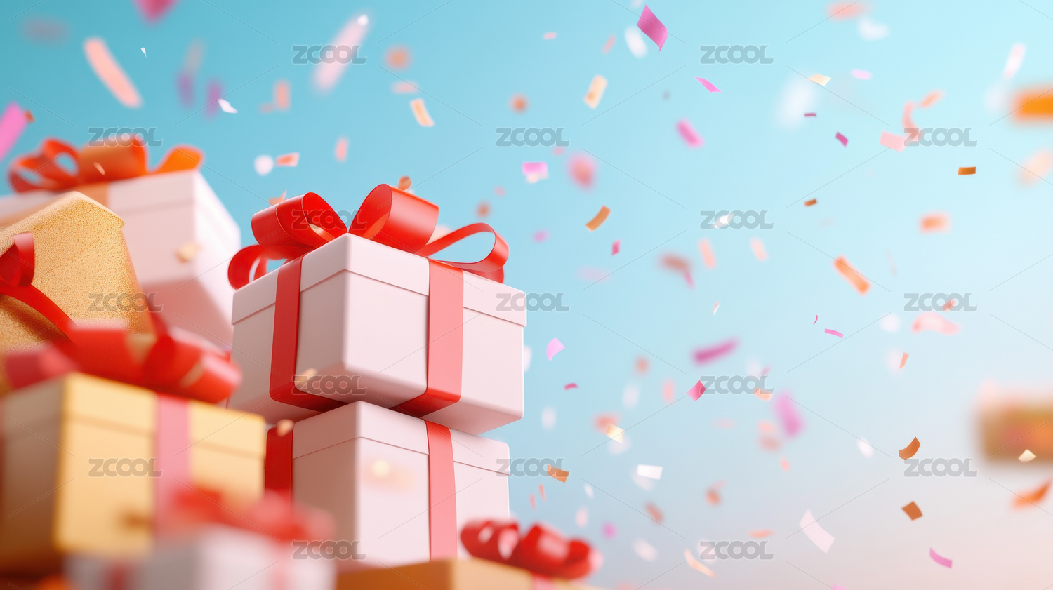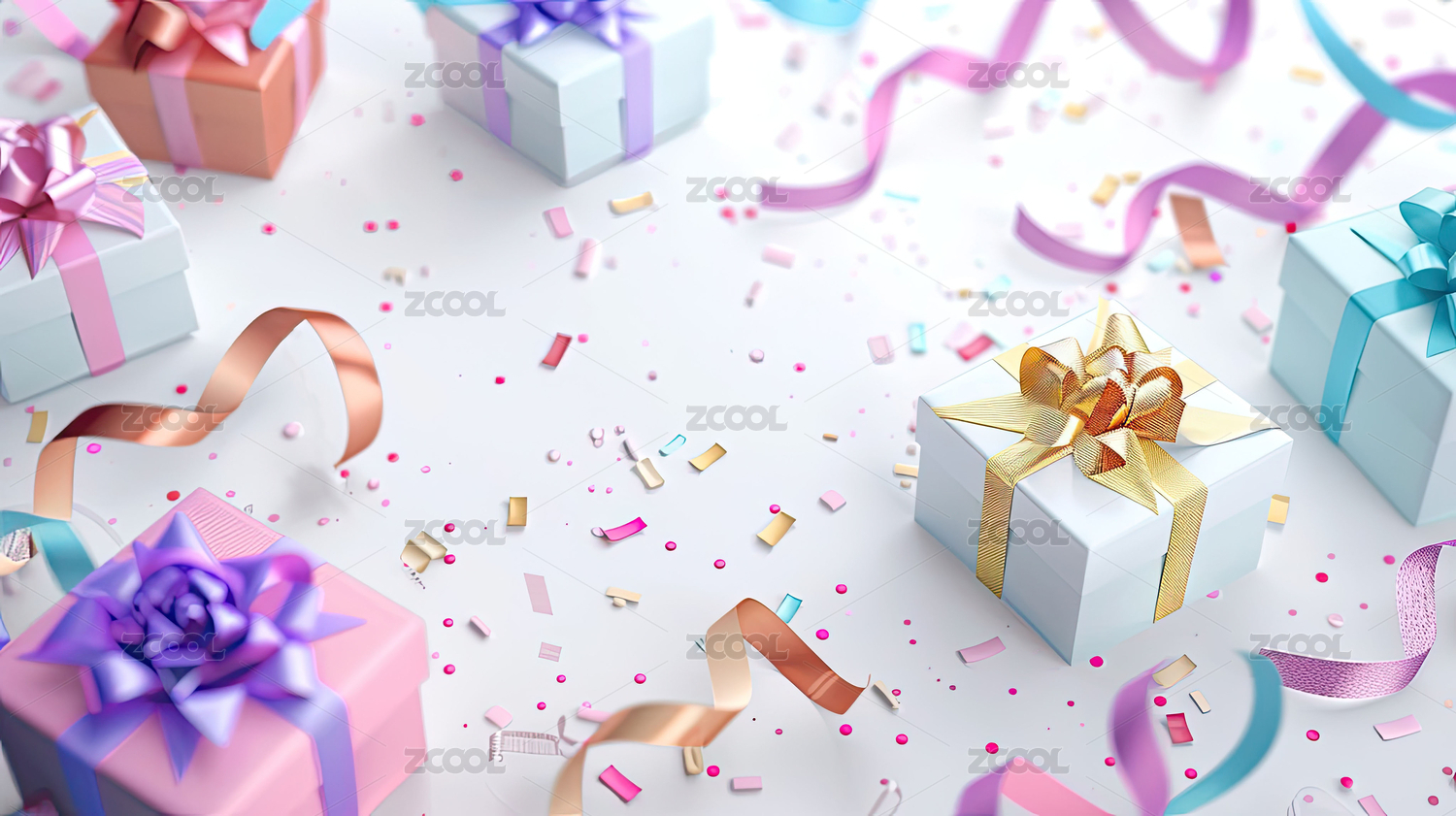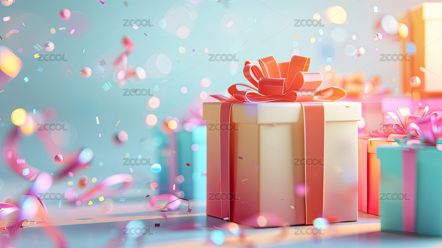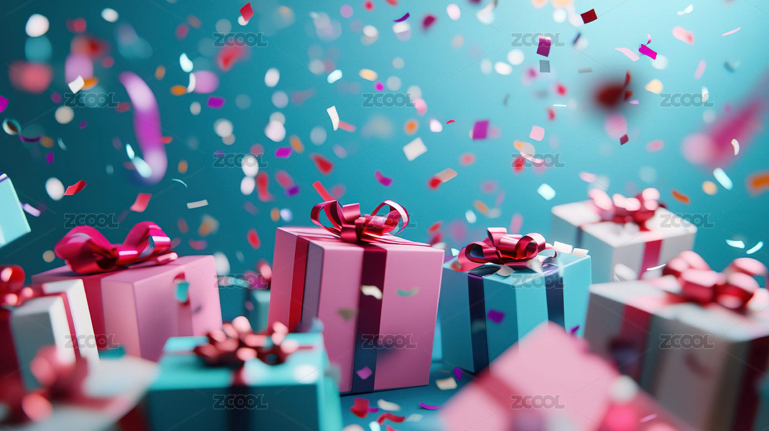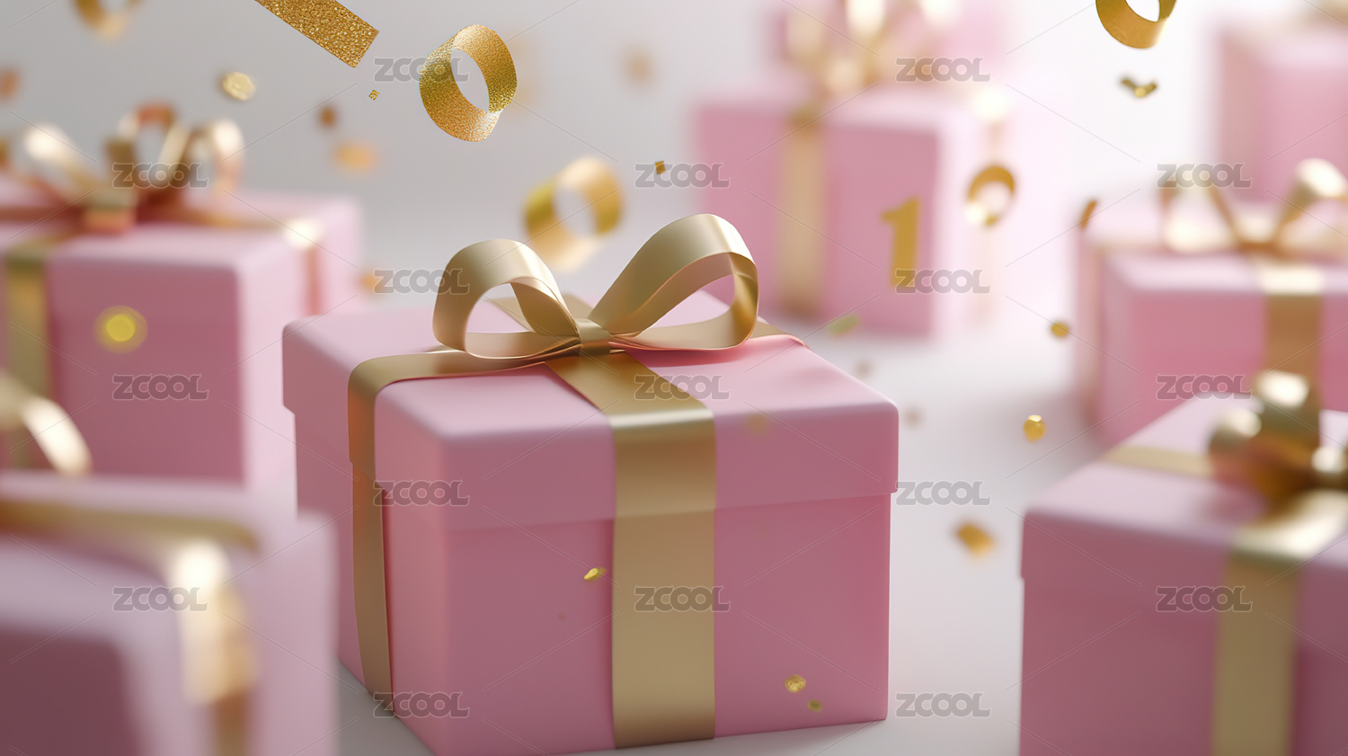 粉色礼物盒与蓝色蝴蝶结 庆祝氛围