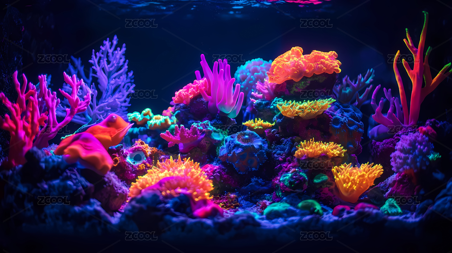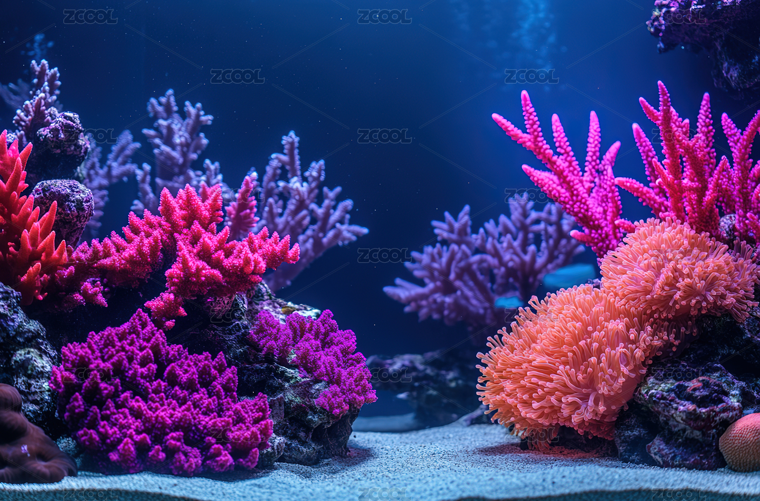 城市海洋水族馆中的观赏鱼类和珊瑚礁的场景