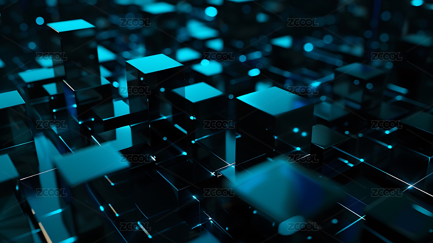 数码科技抽象蓝色发光立方体海报背景