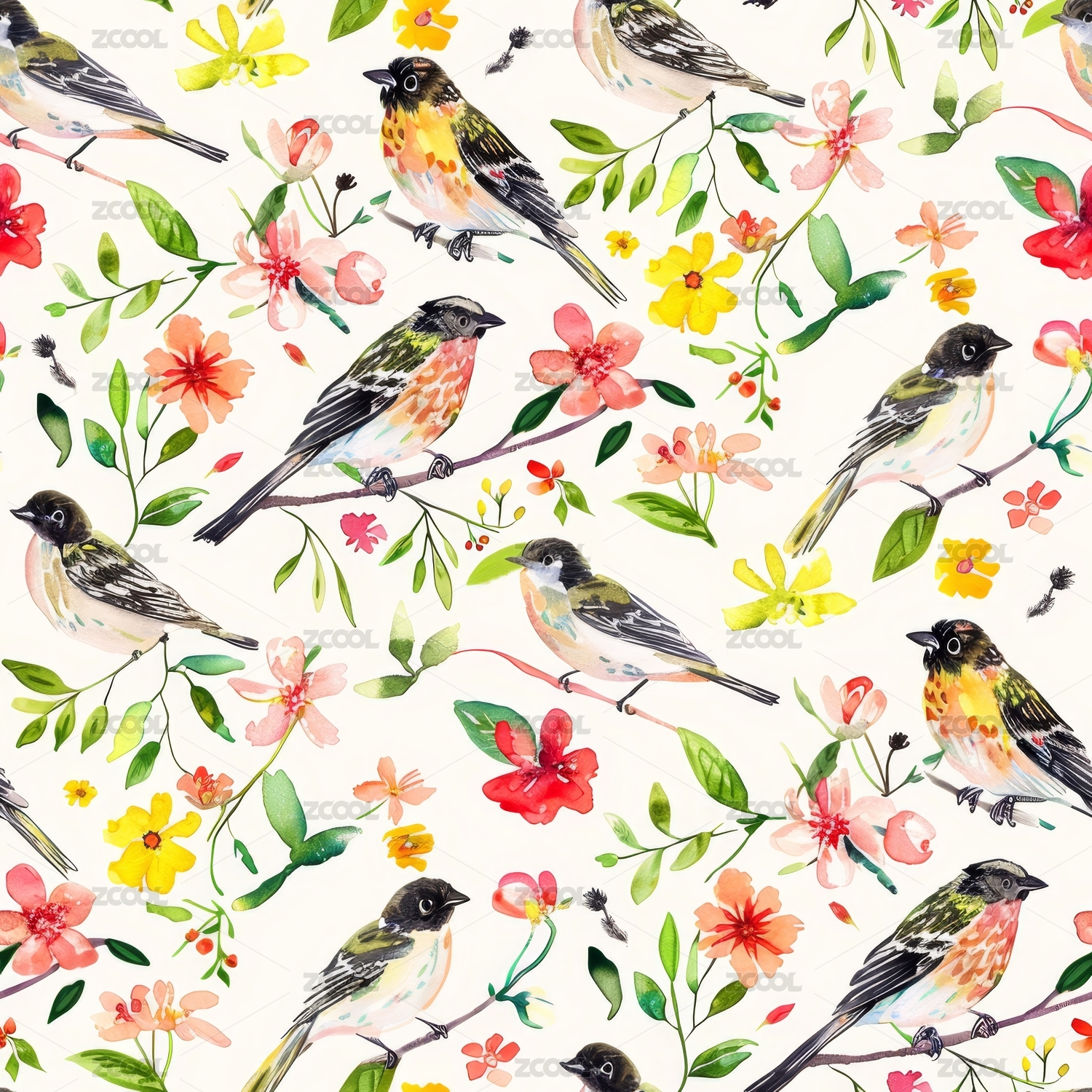 鸟春暖花开无缝图案