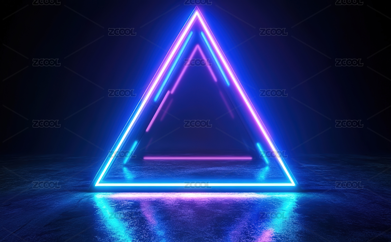 抽象霓虹灯发光几何线条3D渲染商务背景