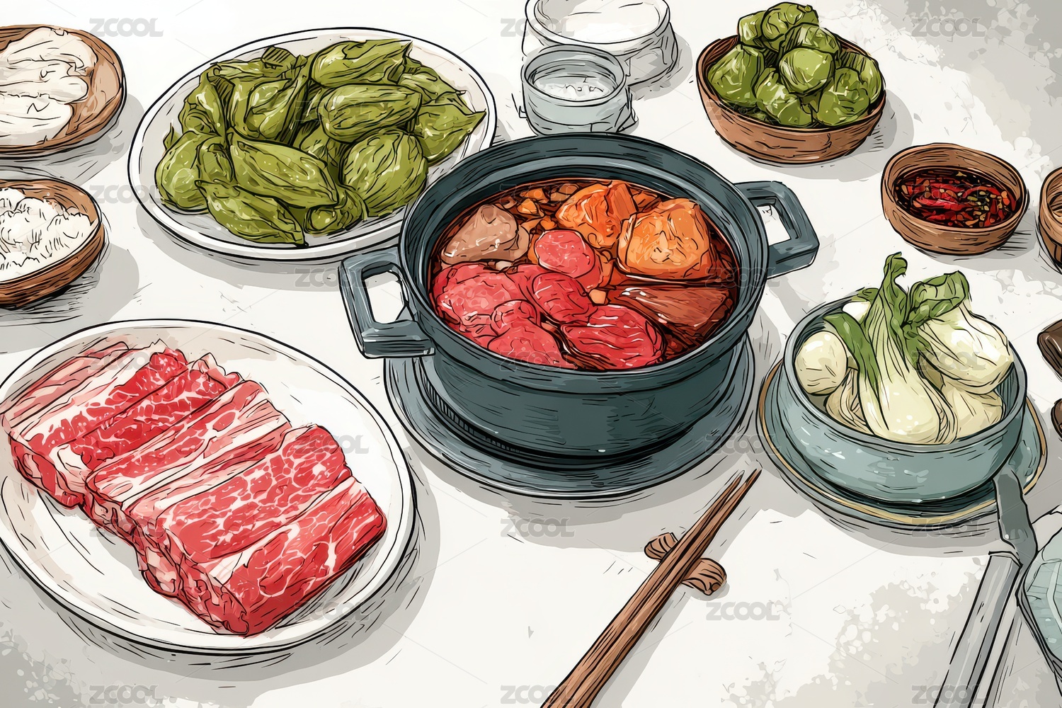火锅材料插画