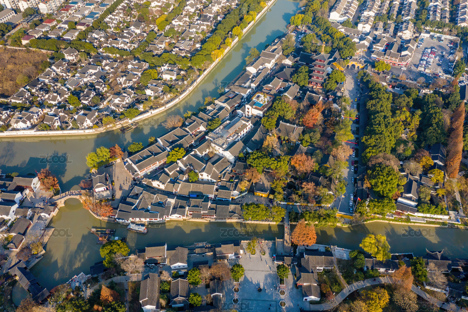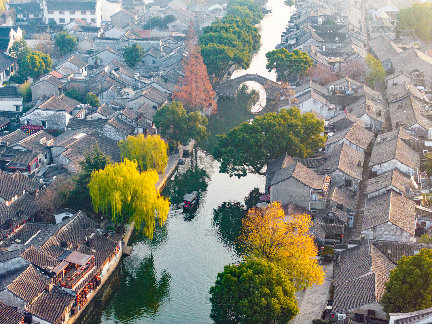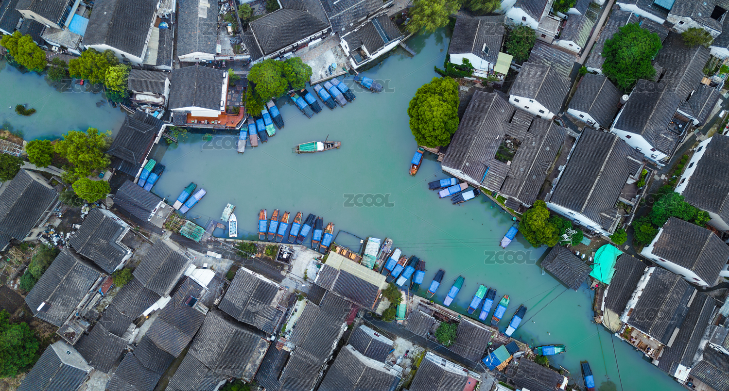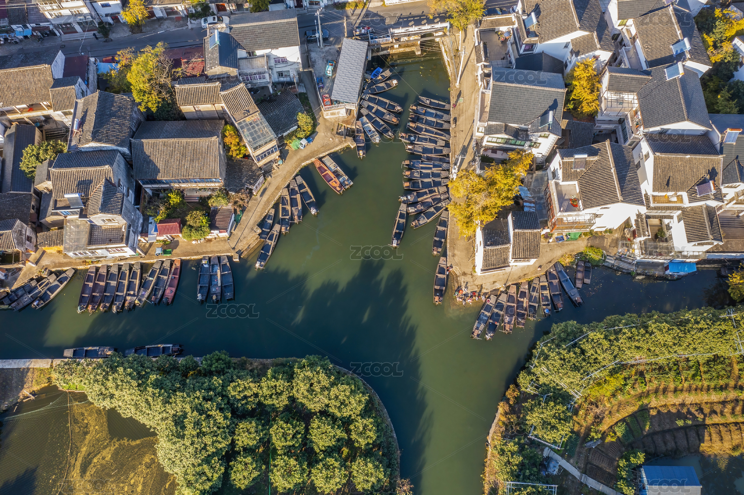 浙江宁波桐乡乌镇西栅古镇江南水乡航拍
