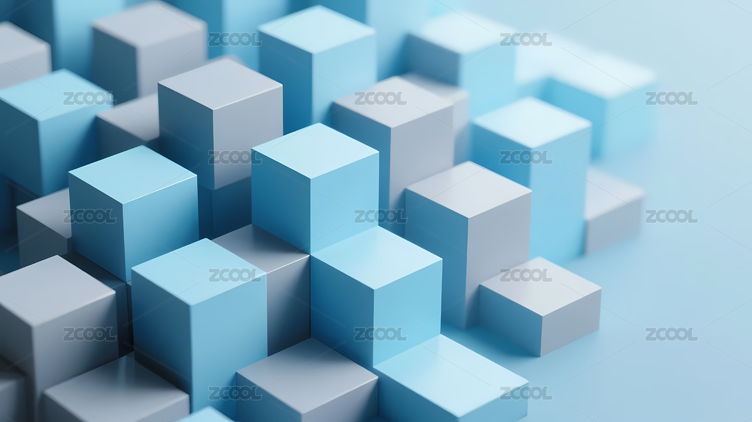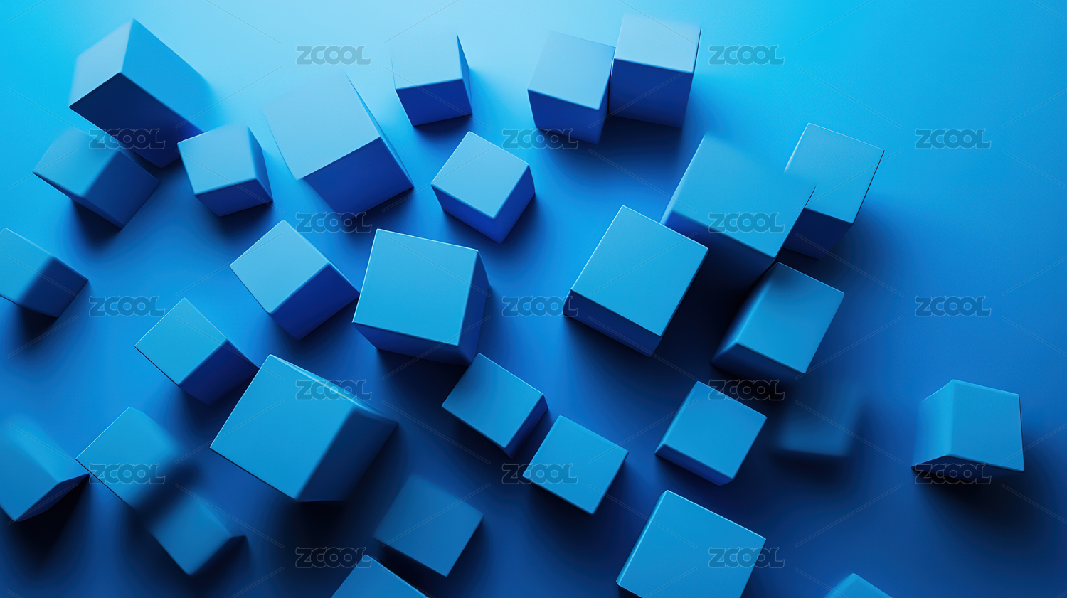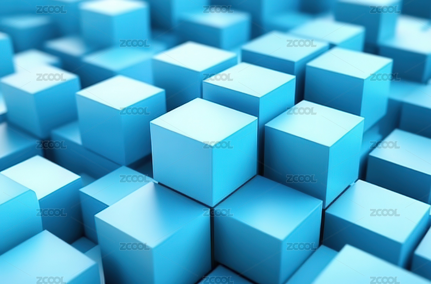 蓝色背景下堆叠的蓝色玩具块的特写镜头
