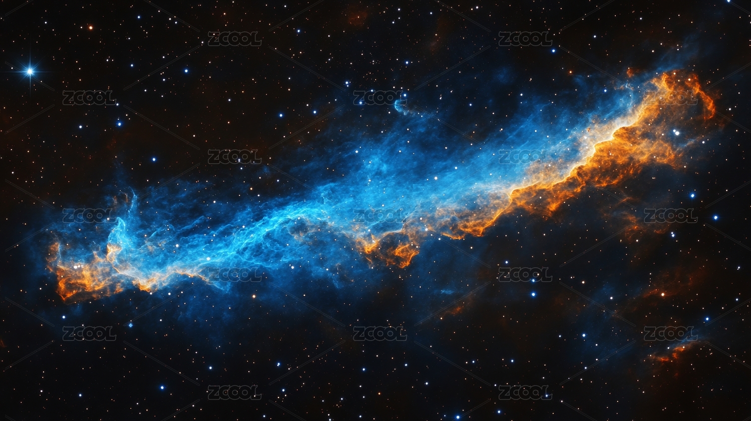 星云在宇宙中的蓝色与橙色光辉