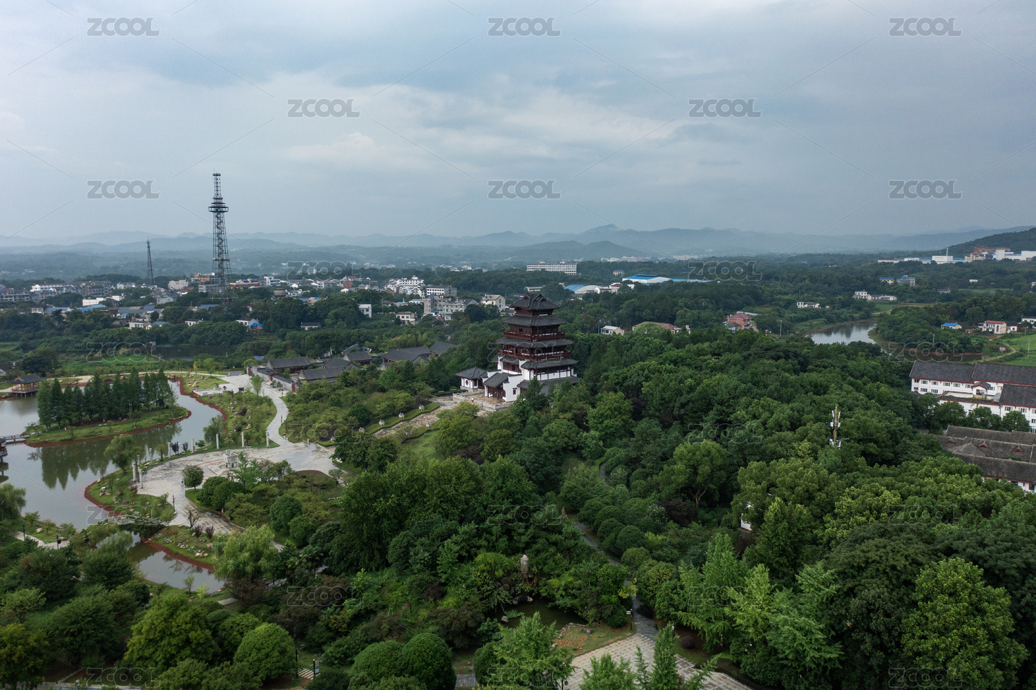 航拍湖南长沙宁乡花明楼刘少奇故居
