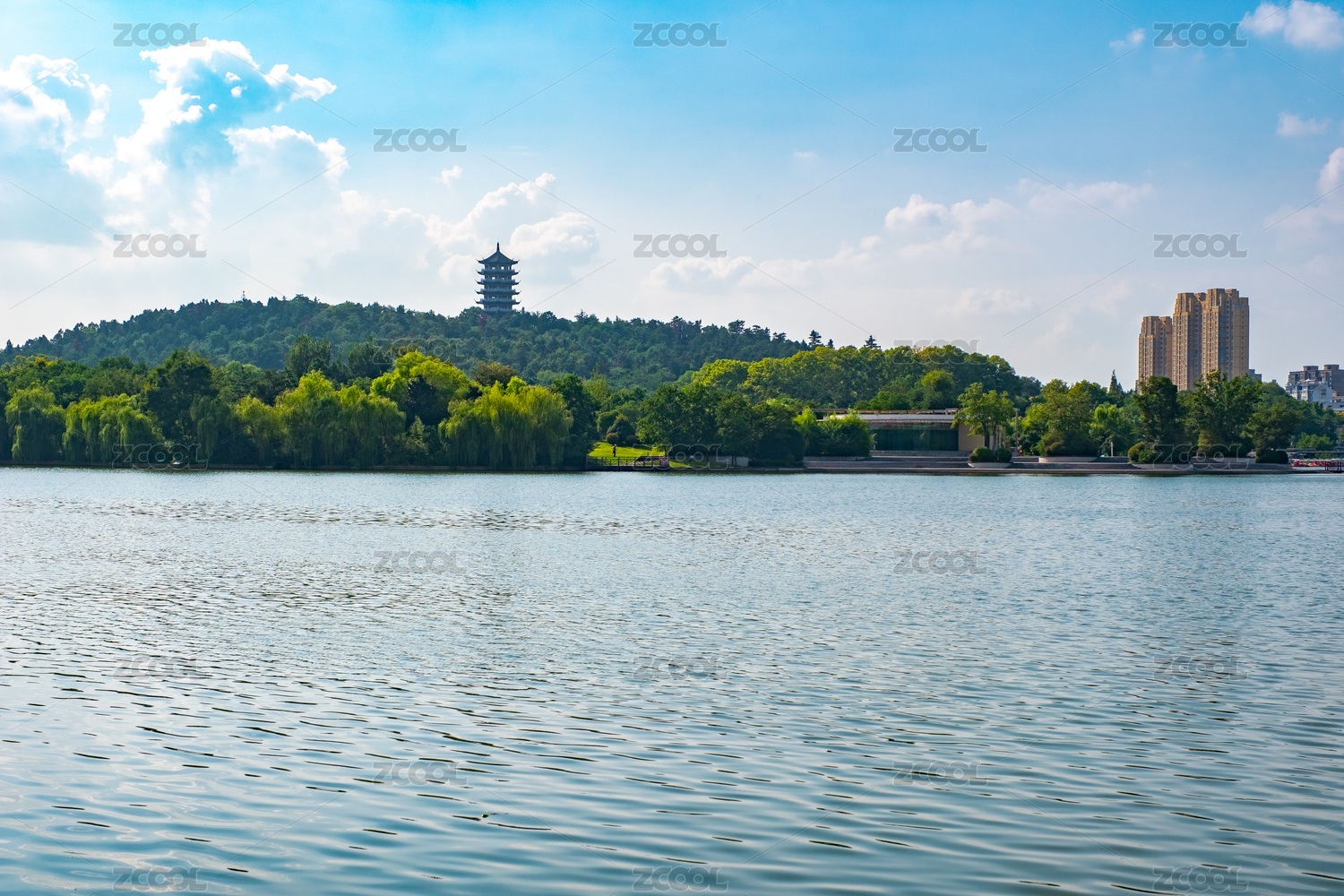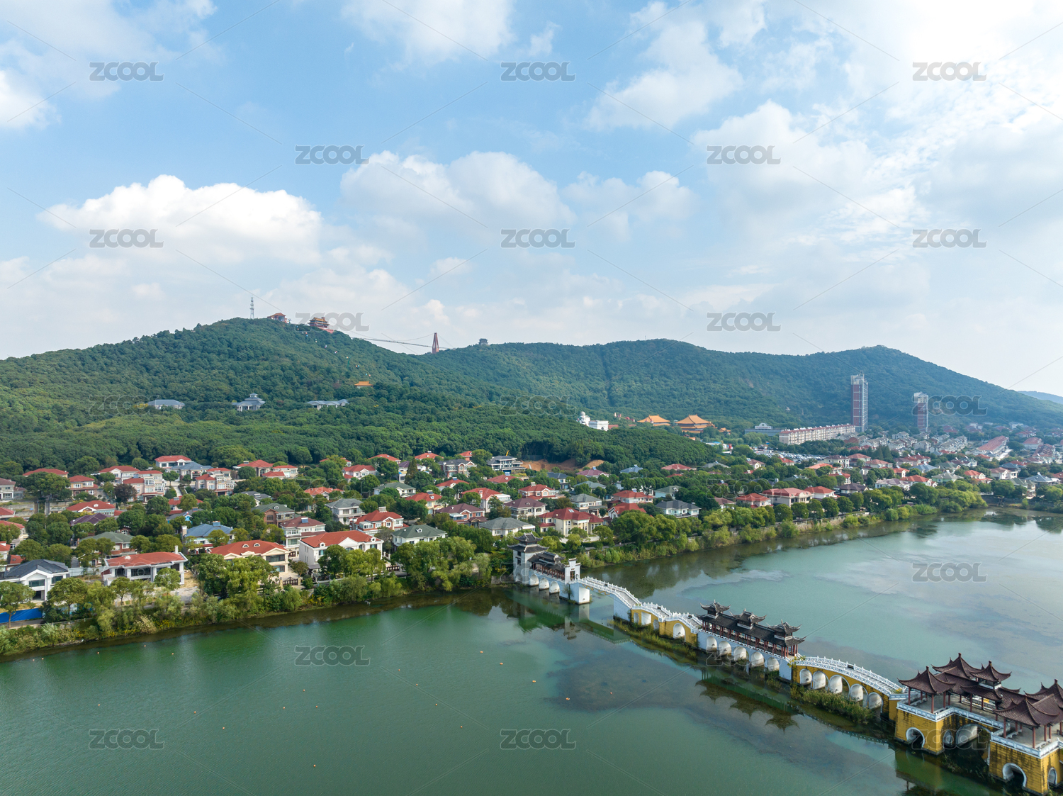 航拍江苏省徐州市苏公塔与云龙湖风景区