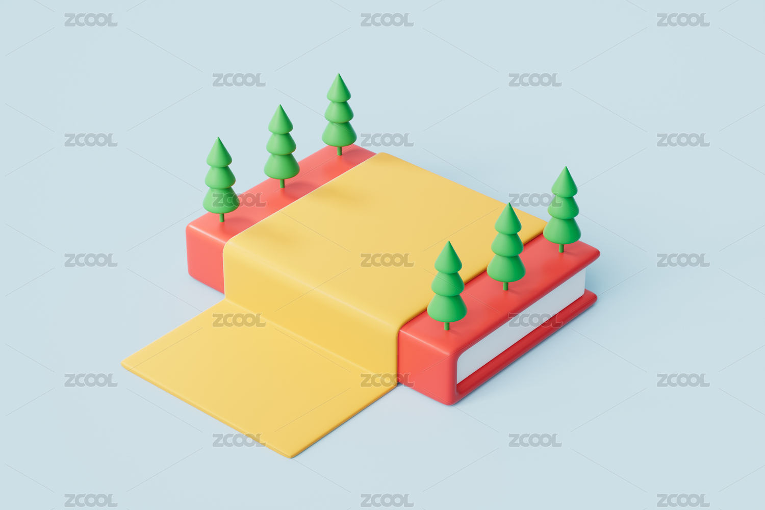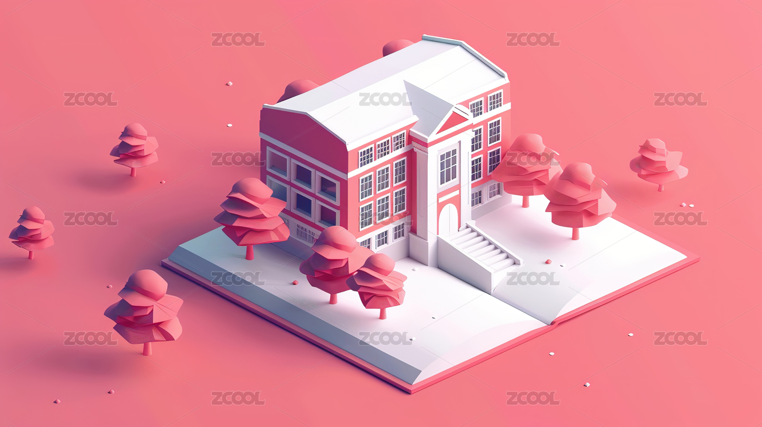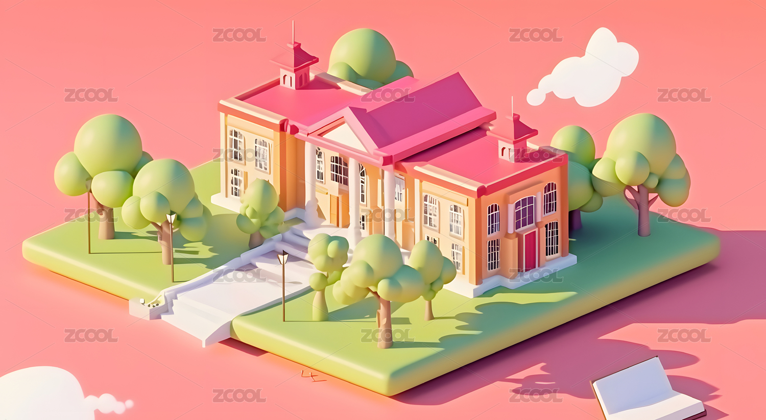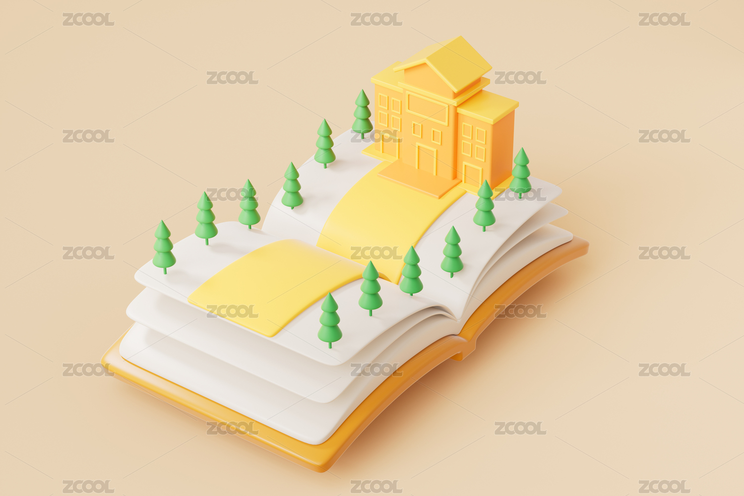 3D卡通书本上的学校创意场景