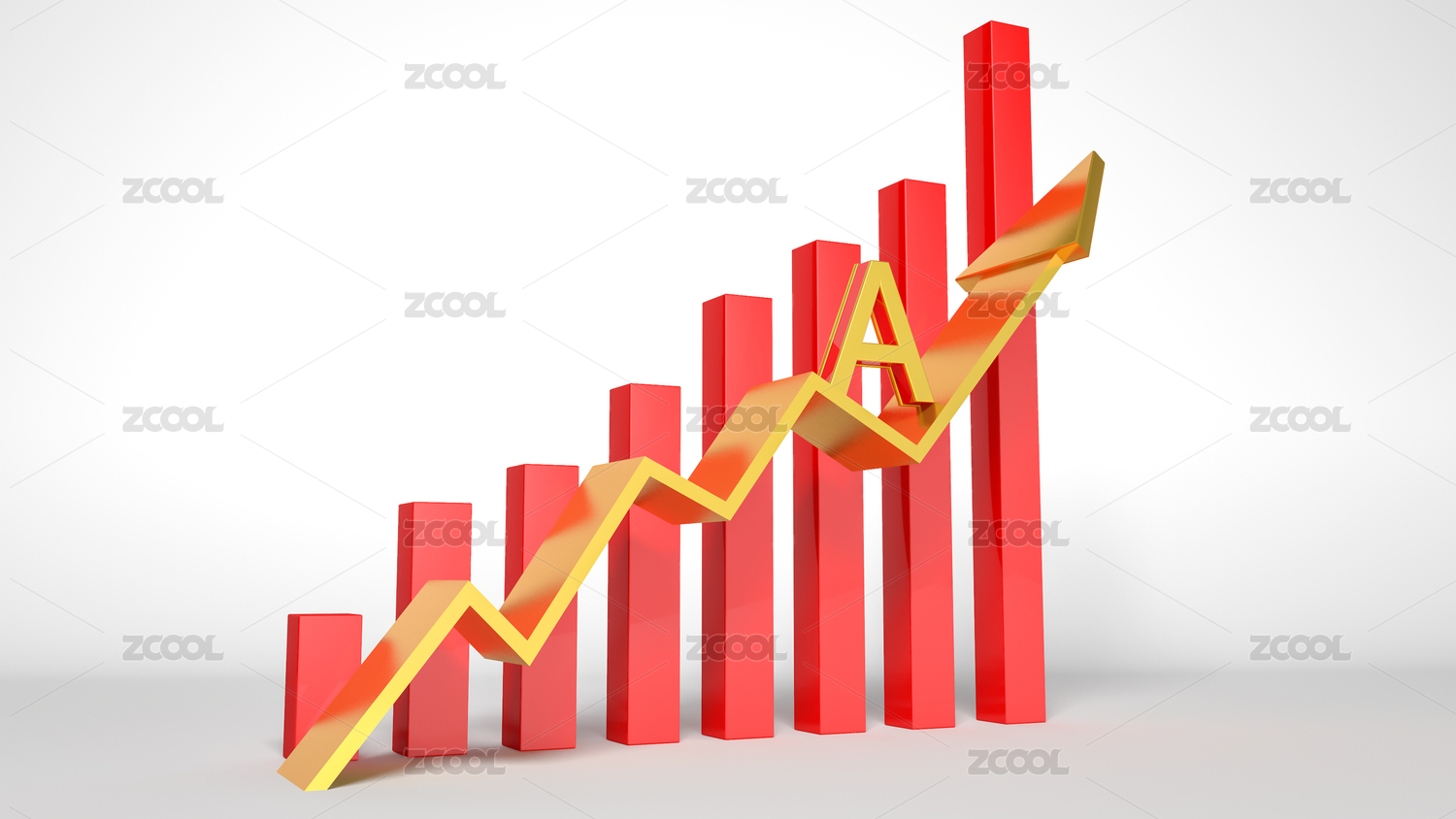 红色立体上升箭头与柱状图组合图