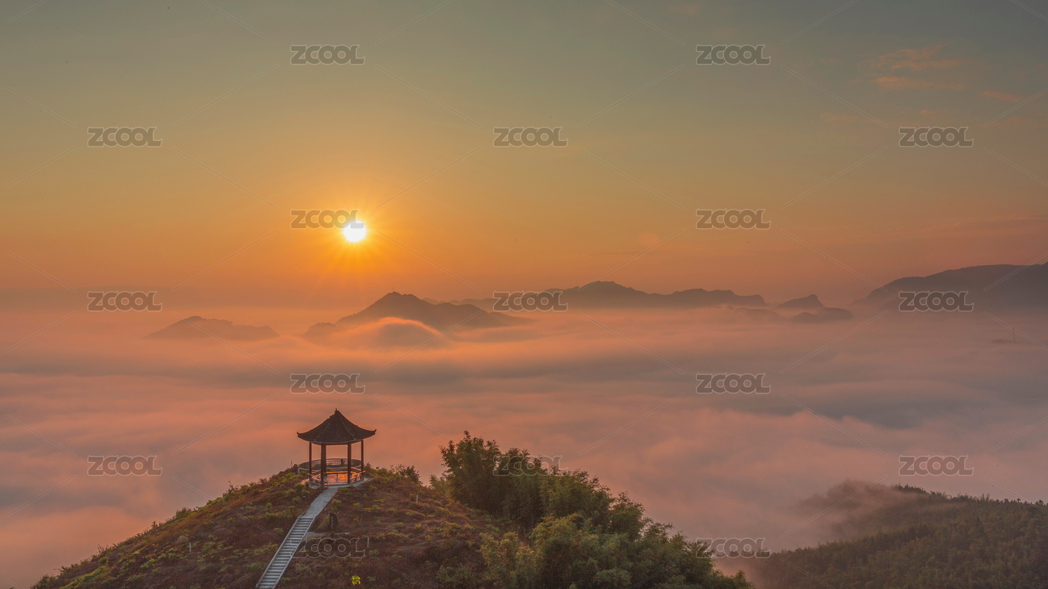素材,背景,天空,云,清晨,晨雾,缭绕,橙色天空,山峦,剪影
