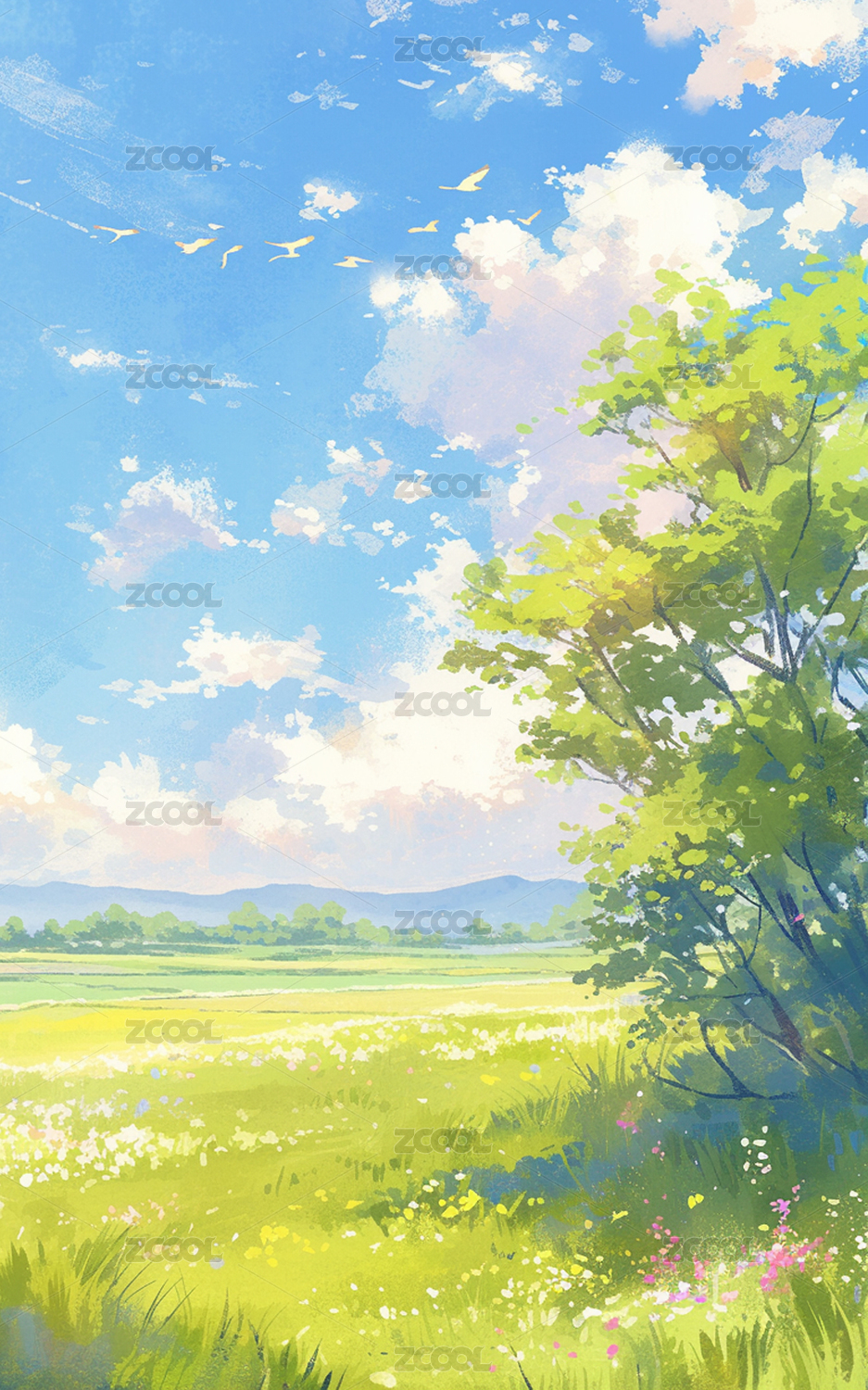 唯美的卡通春天风景插画背景