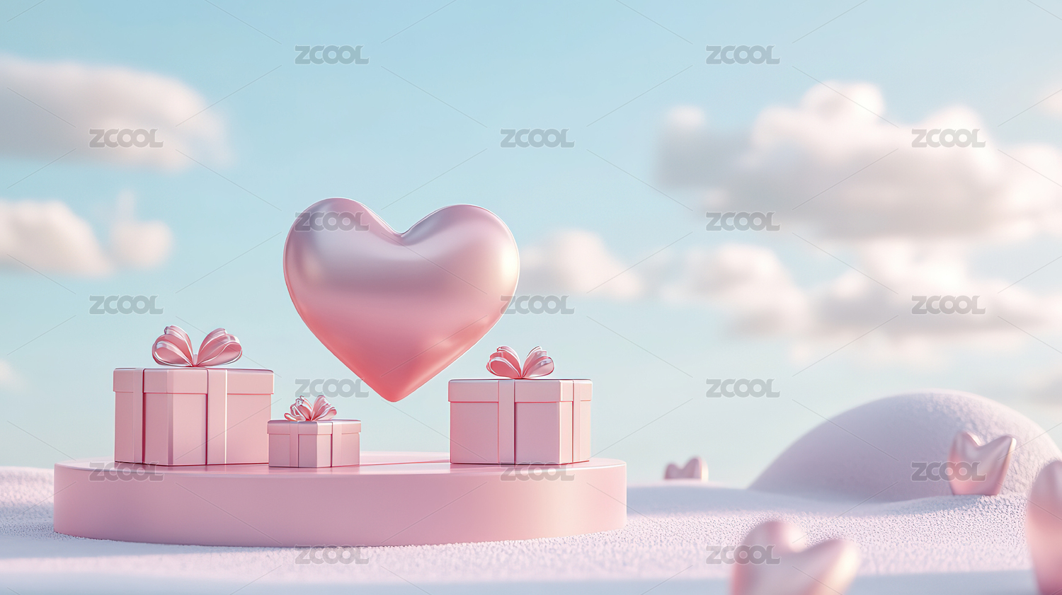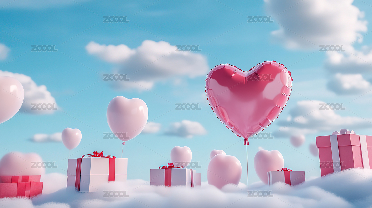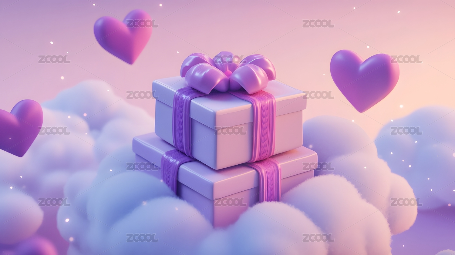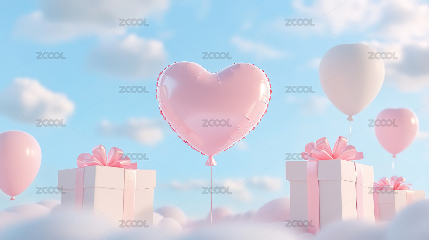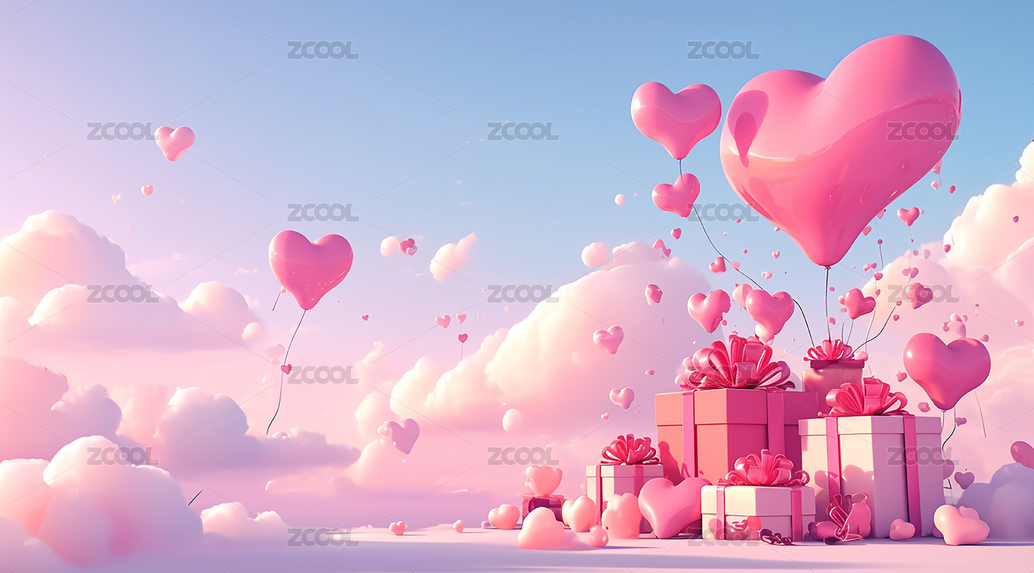 粉色爱心礼物云朵背景