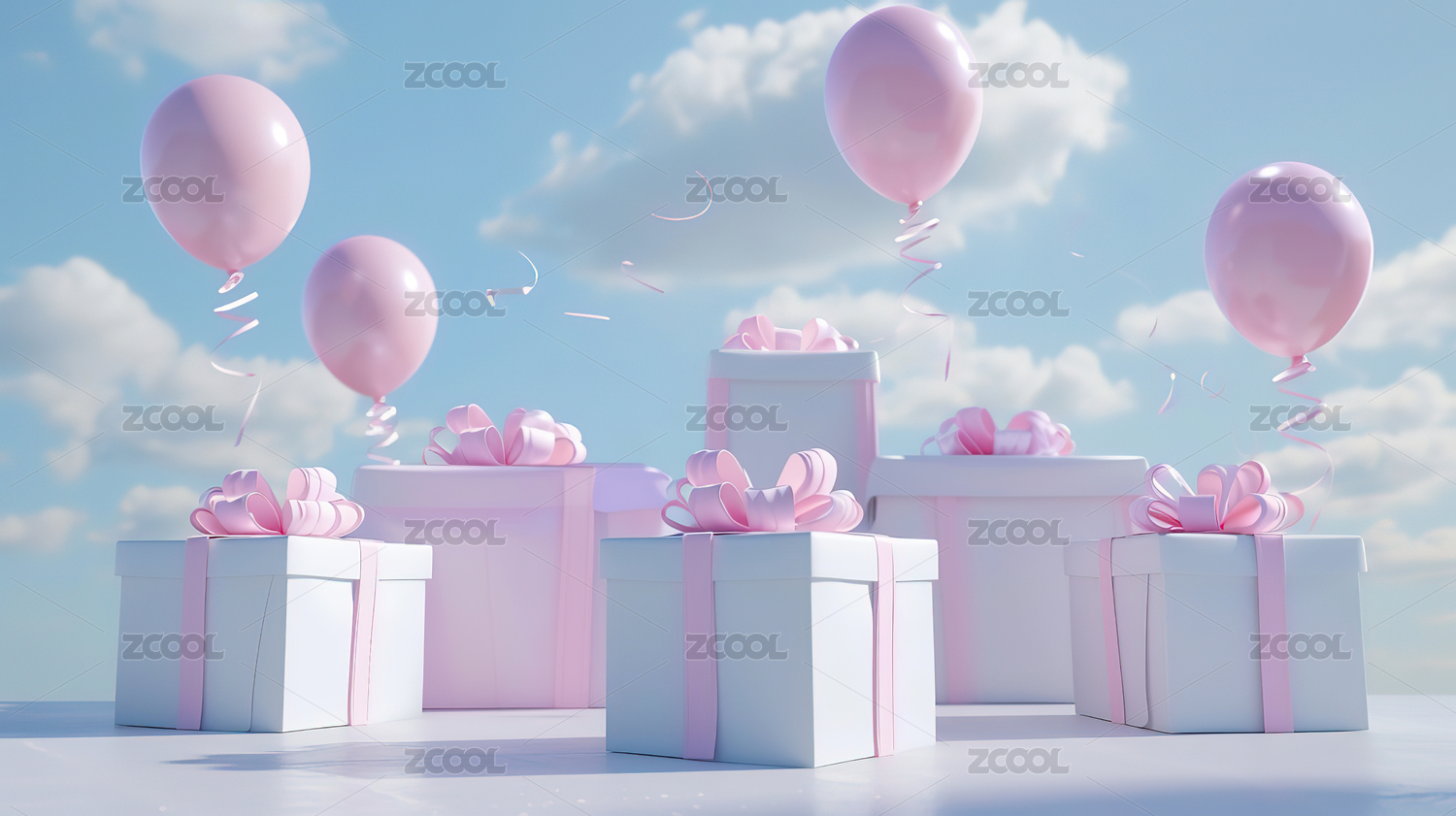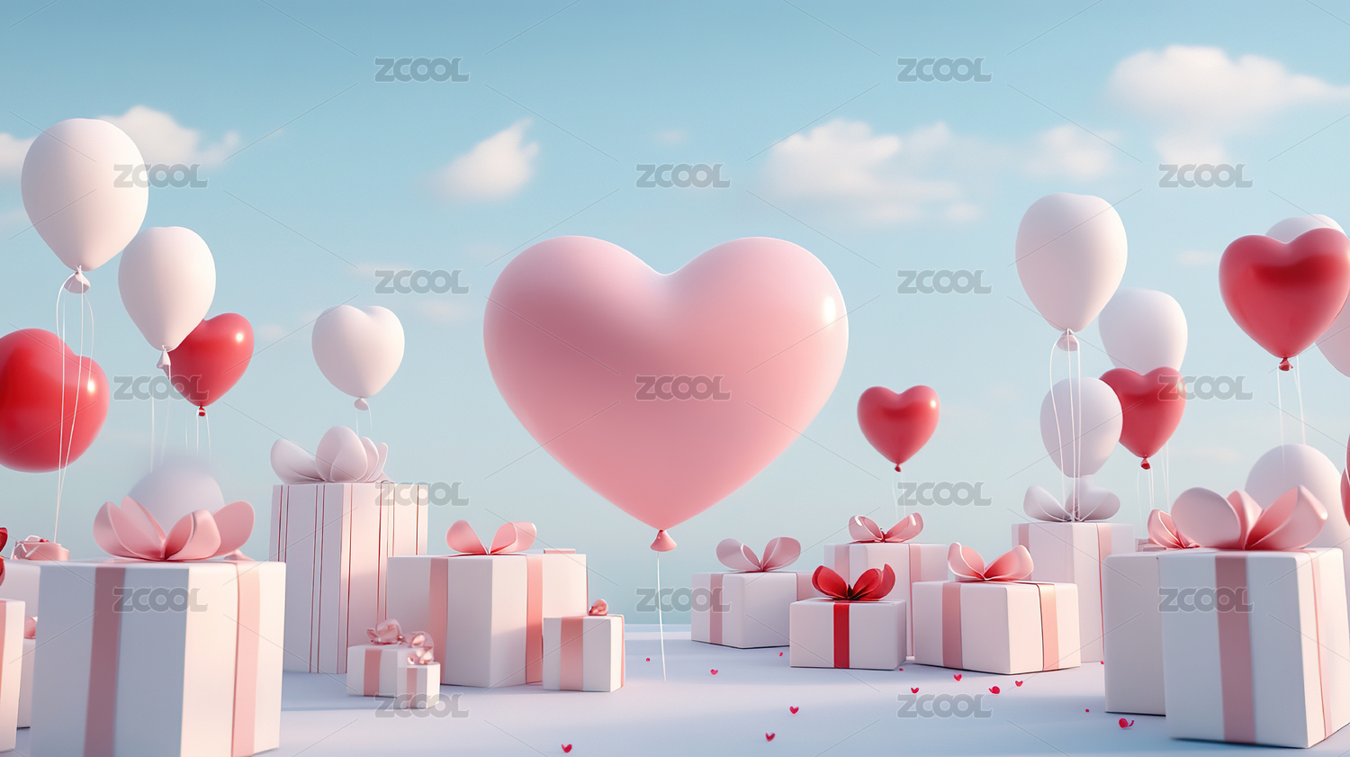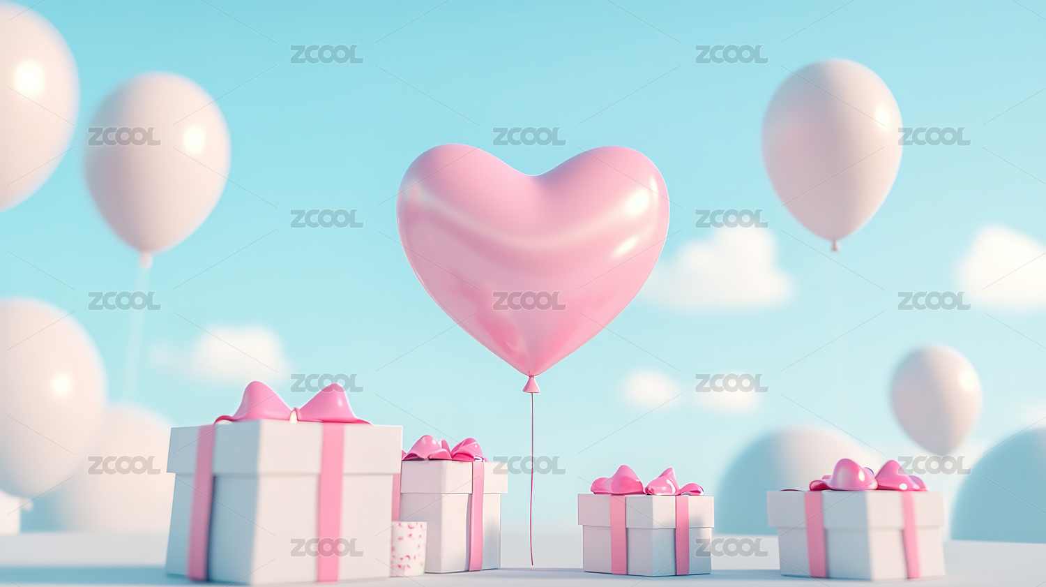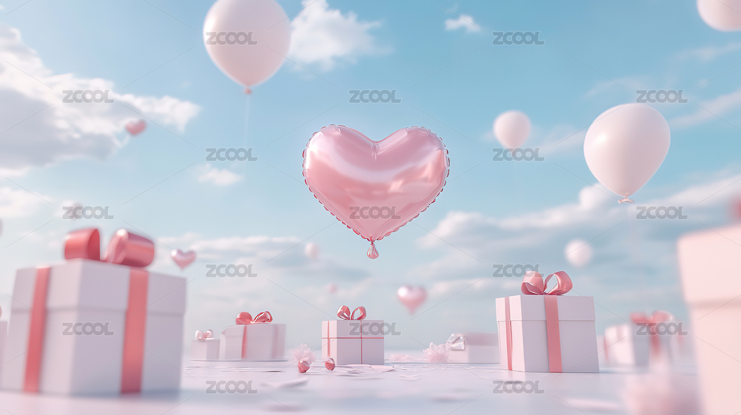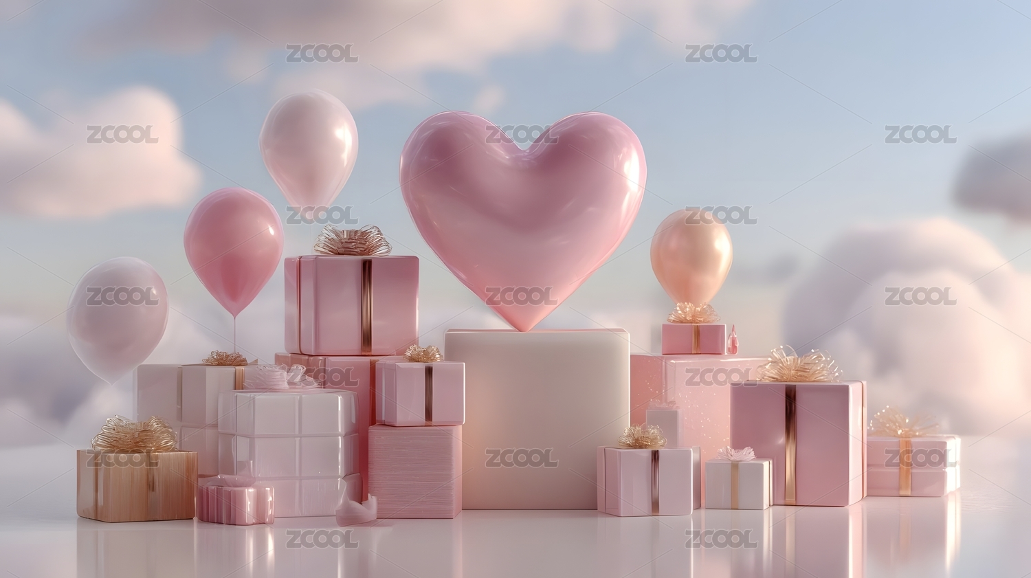 粉色爱心礼物云朵背景