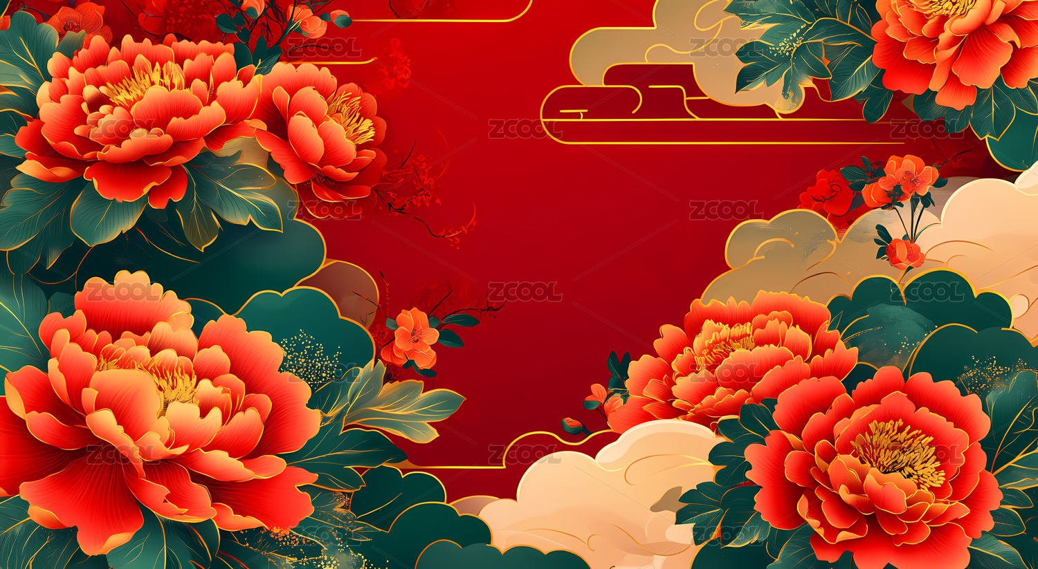 金边蝴蝶牡丹中国传统国潮花卉刺绣插画