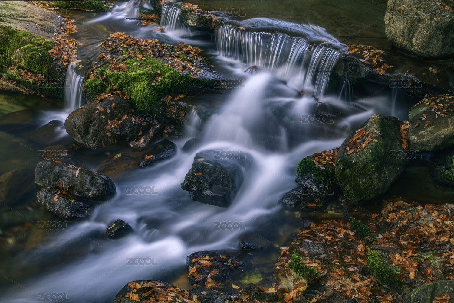 辽宁本溪的红色枫叶林小桥流水瀑布五彩斑斓