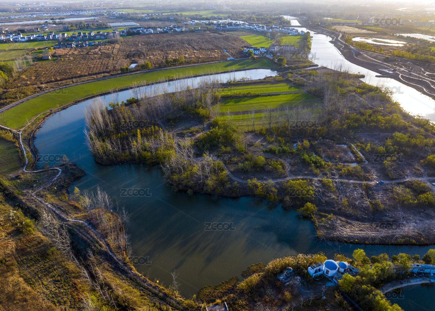 中国天津滨海新区大港湿地公园航拍图春色图