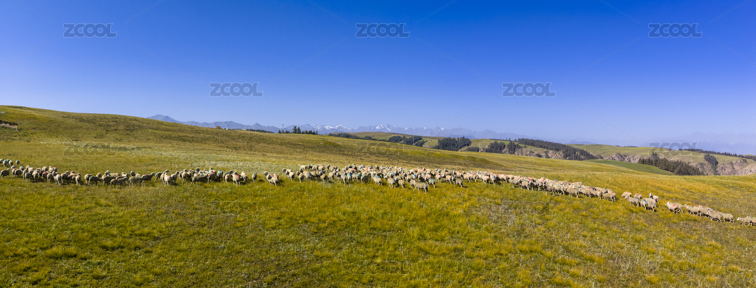 中国甘肃甘南夏河草原羊群夏天的自然风光