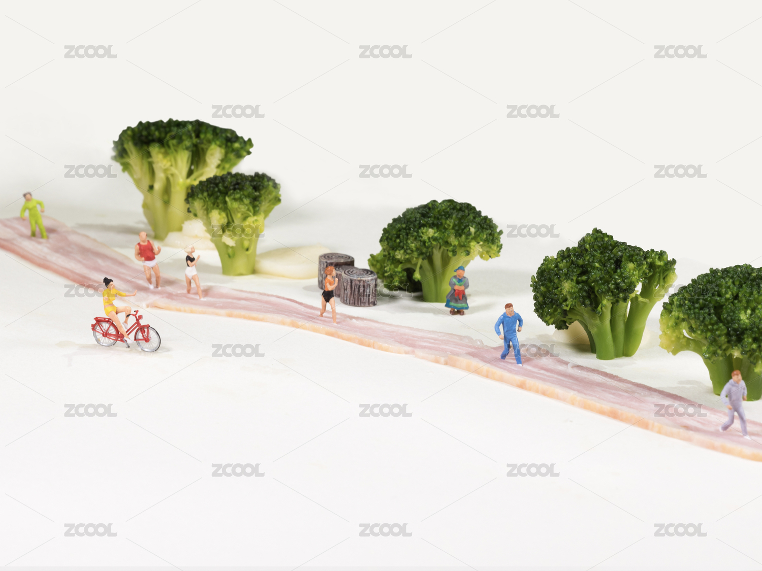 骑行,创意,微距,小人国,特写,山渣条,树林,蔬菜,西兰花