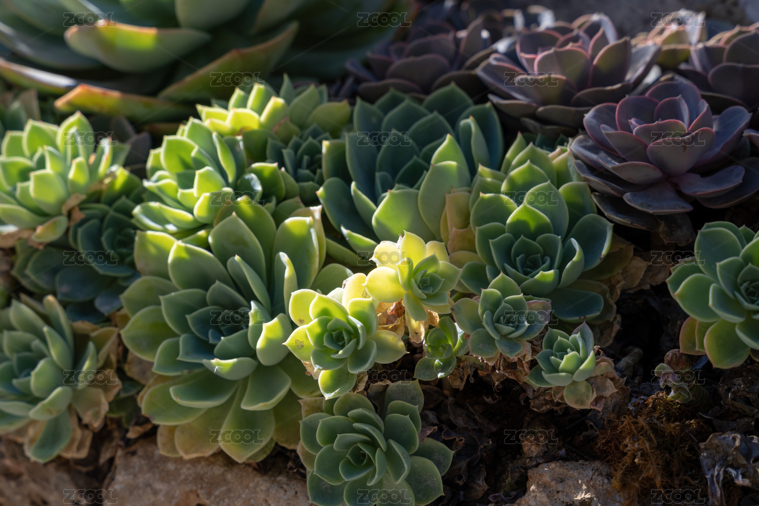 中国四川成都花卉市场老木槽栽种的肉肉植物