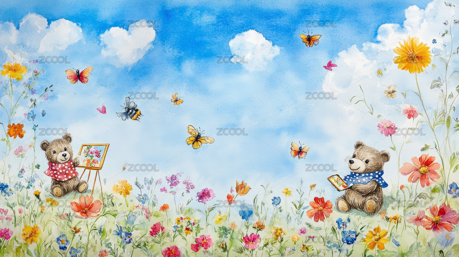 可爱,自然,动物,插画,儿童插画,春天,植物,插图画法,绘本,愉悦
