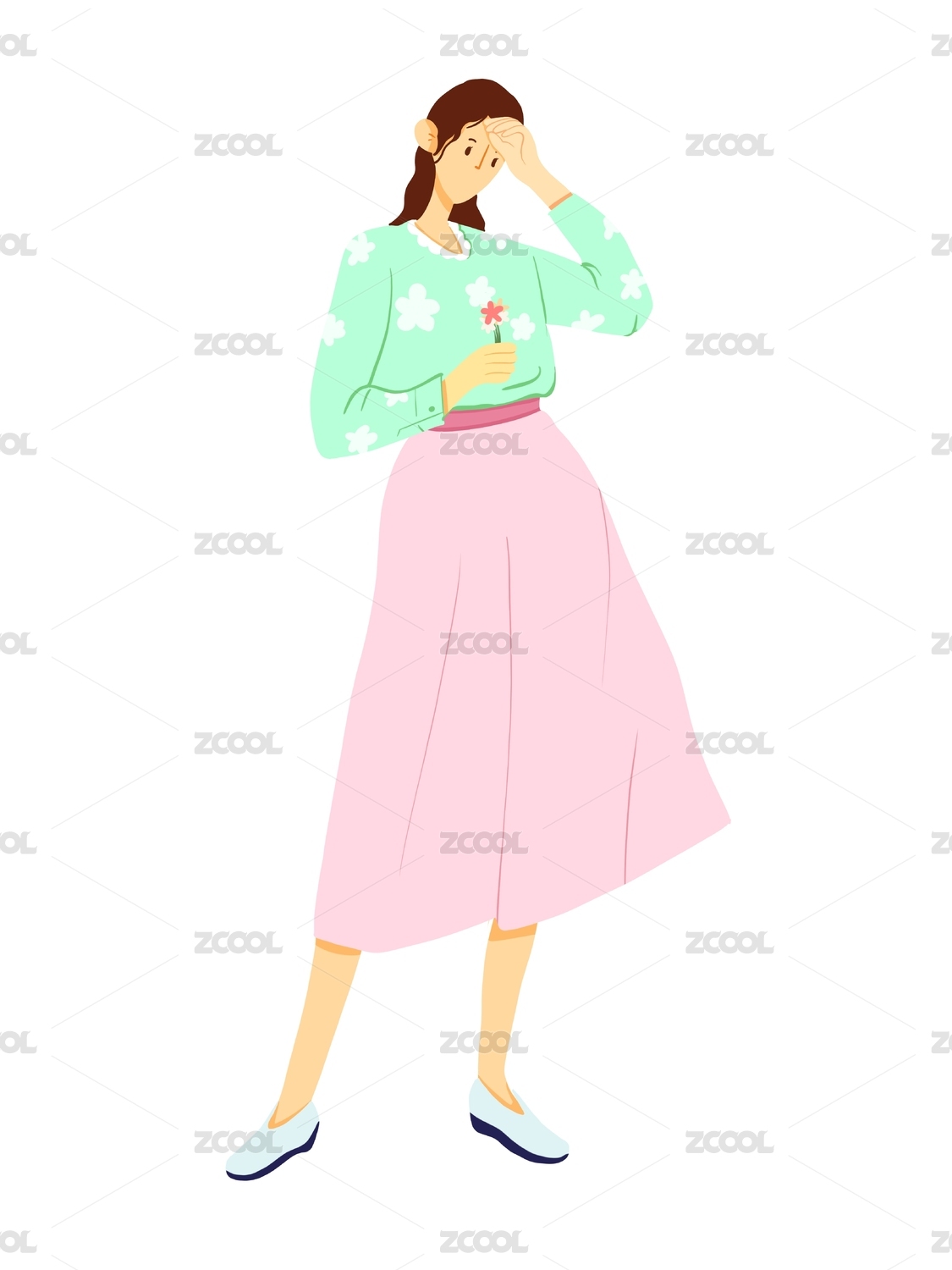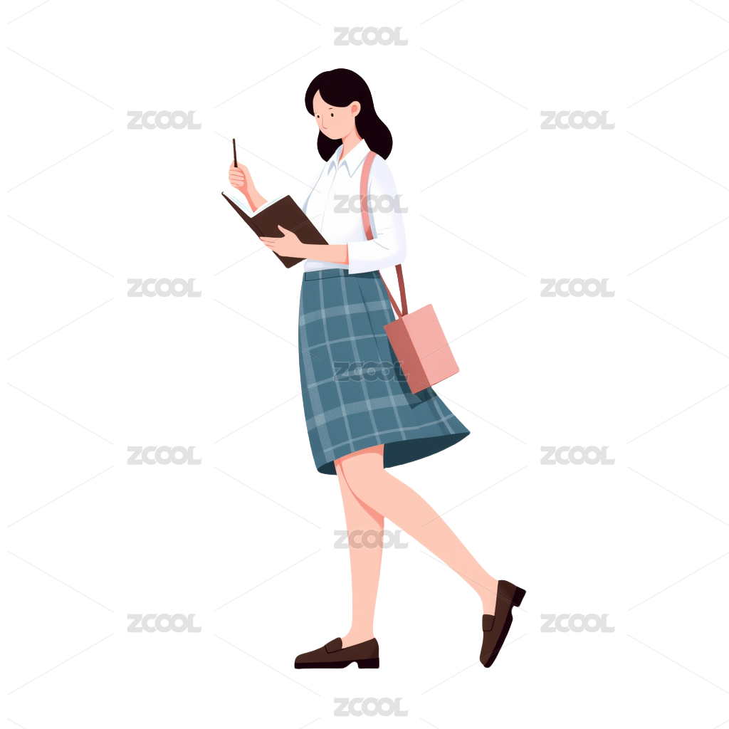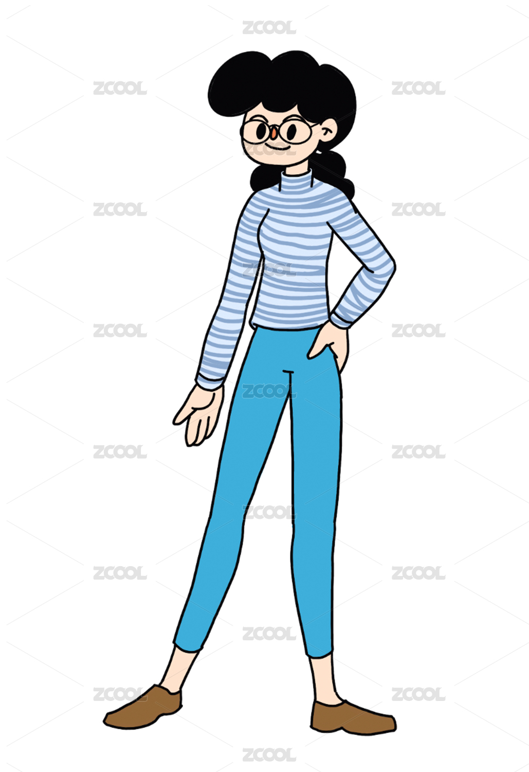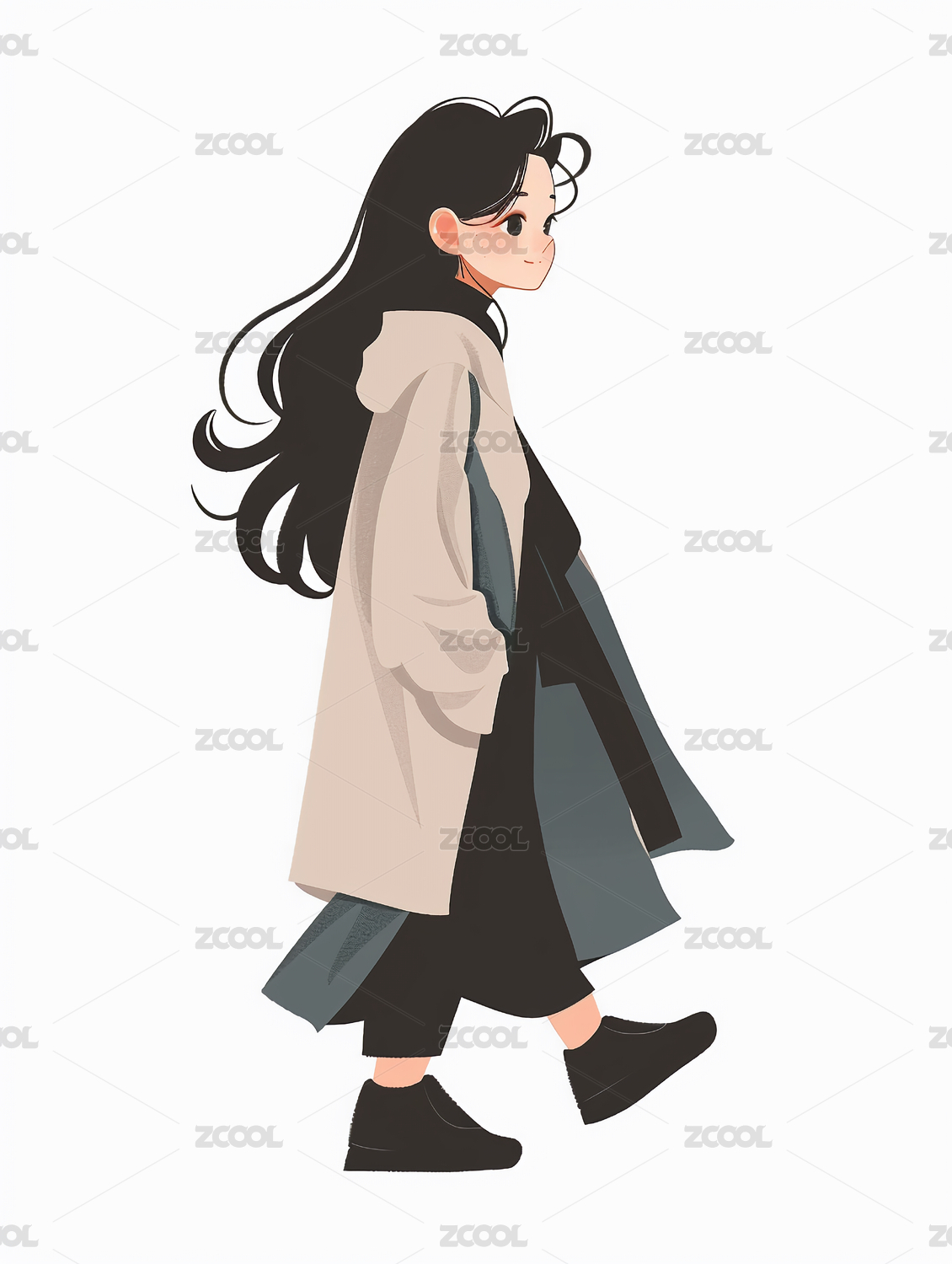 卡通,服装,日常,元素,拿着,长发,女人,可爱,全身,咖啡