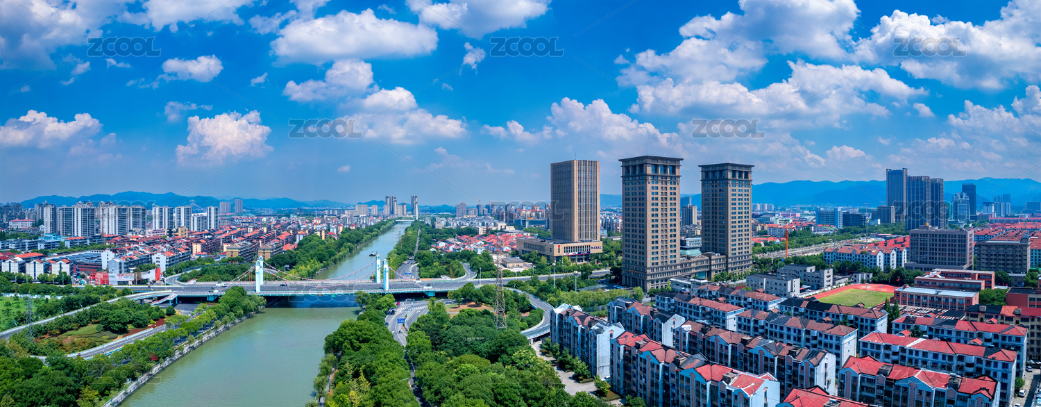 航拍,上虞,城市,城市风光,全景,天空,江河,水,山,建筑