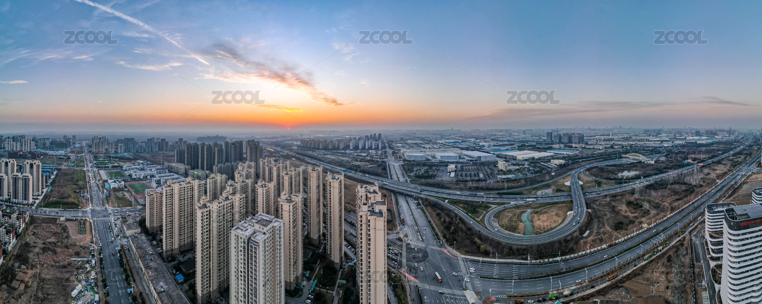 航拍郑州农业路大桥城市快速路高架黄昏夕阳
