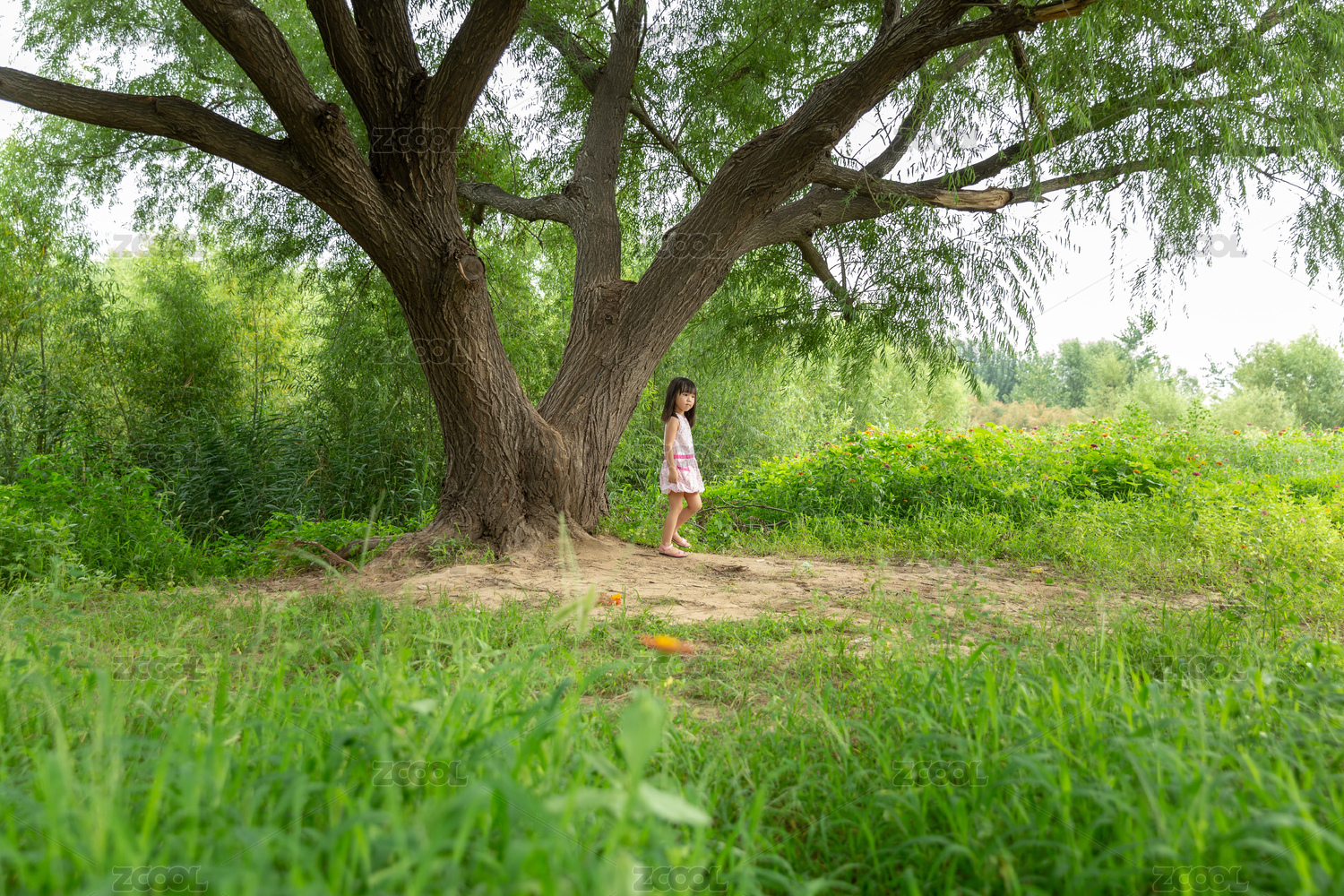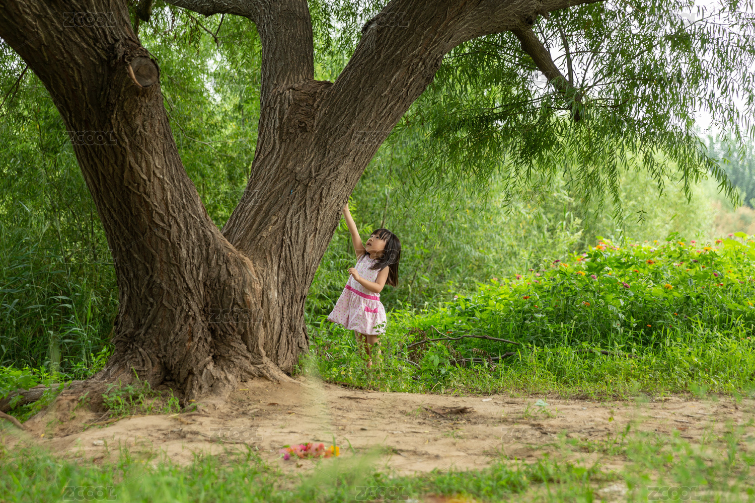 亚洲,儿童,青少年,女孩,户外,小女孩,可爱,中国人,开心,树