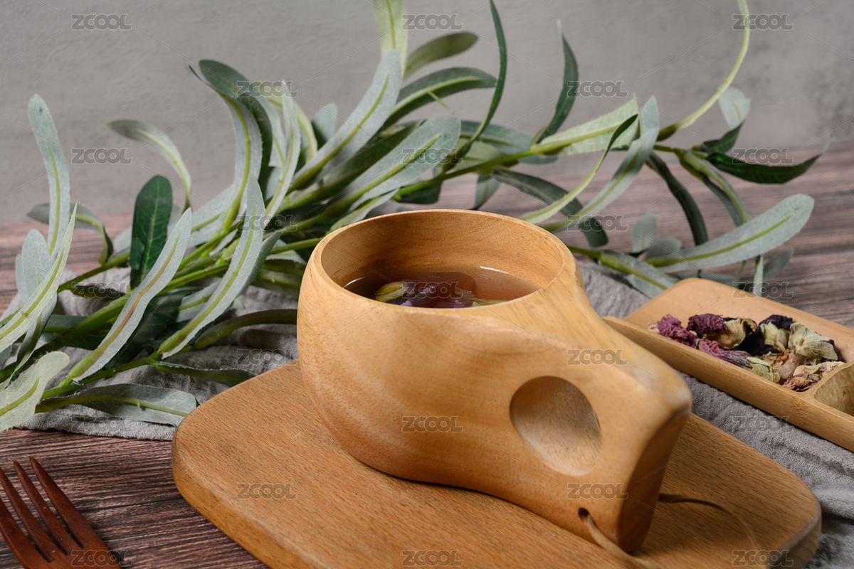 桌面上的杯子里的甘甜可口的夜交藤茶