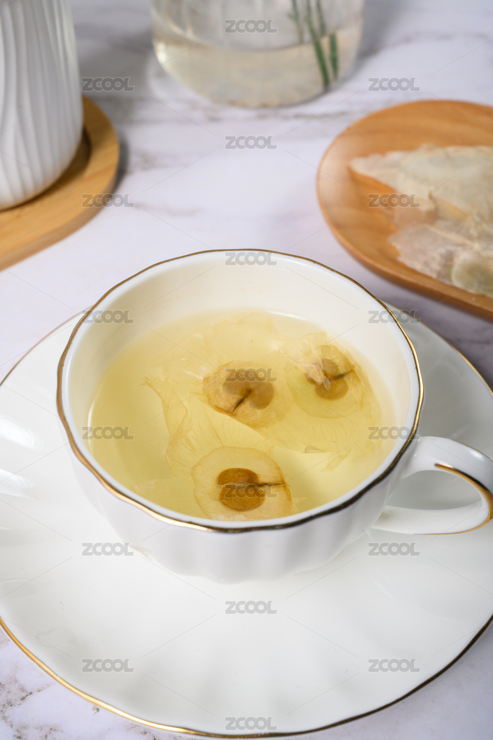 桌面上的杯子里的香甜可口的木蝴蝶茶