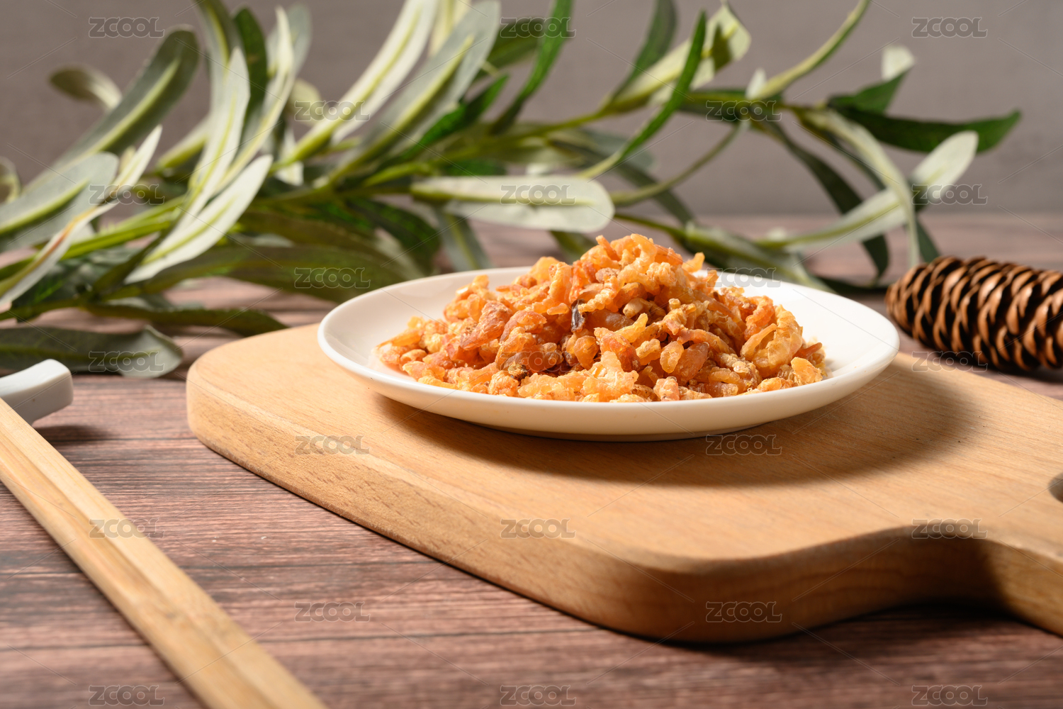 桌面上的盘子里的美味可口的干虾米