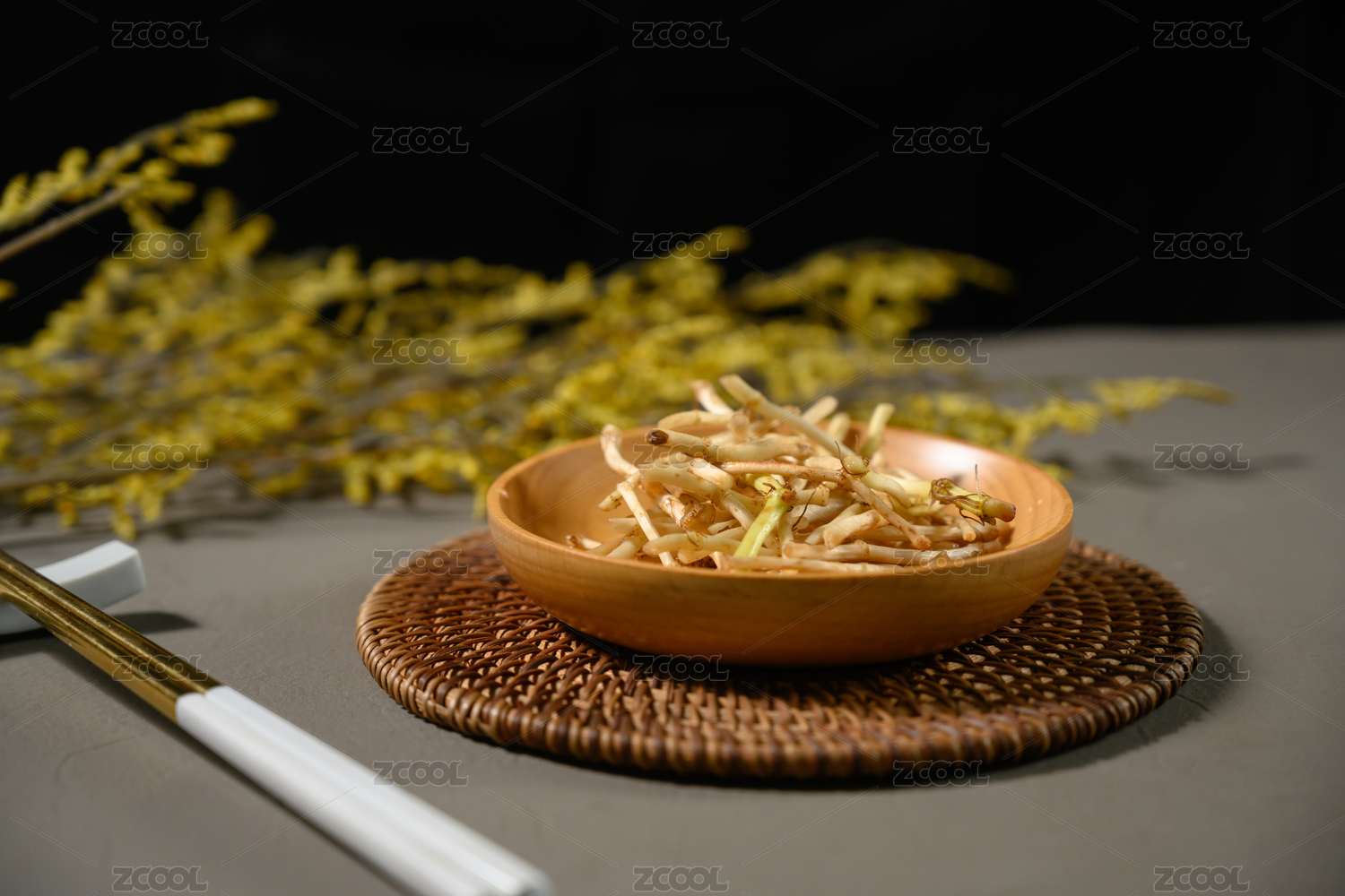 桌面上的盘子里的干爽的秦皮