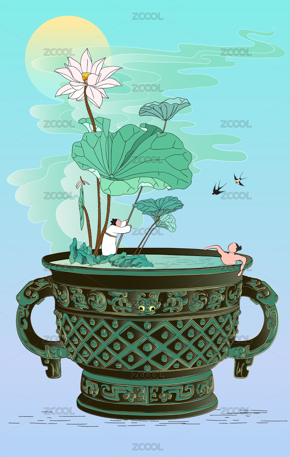 华夏流落海外国宝青铜器乳丁纹簋手绘插画