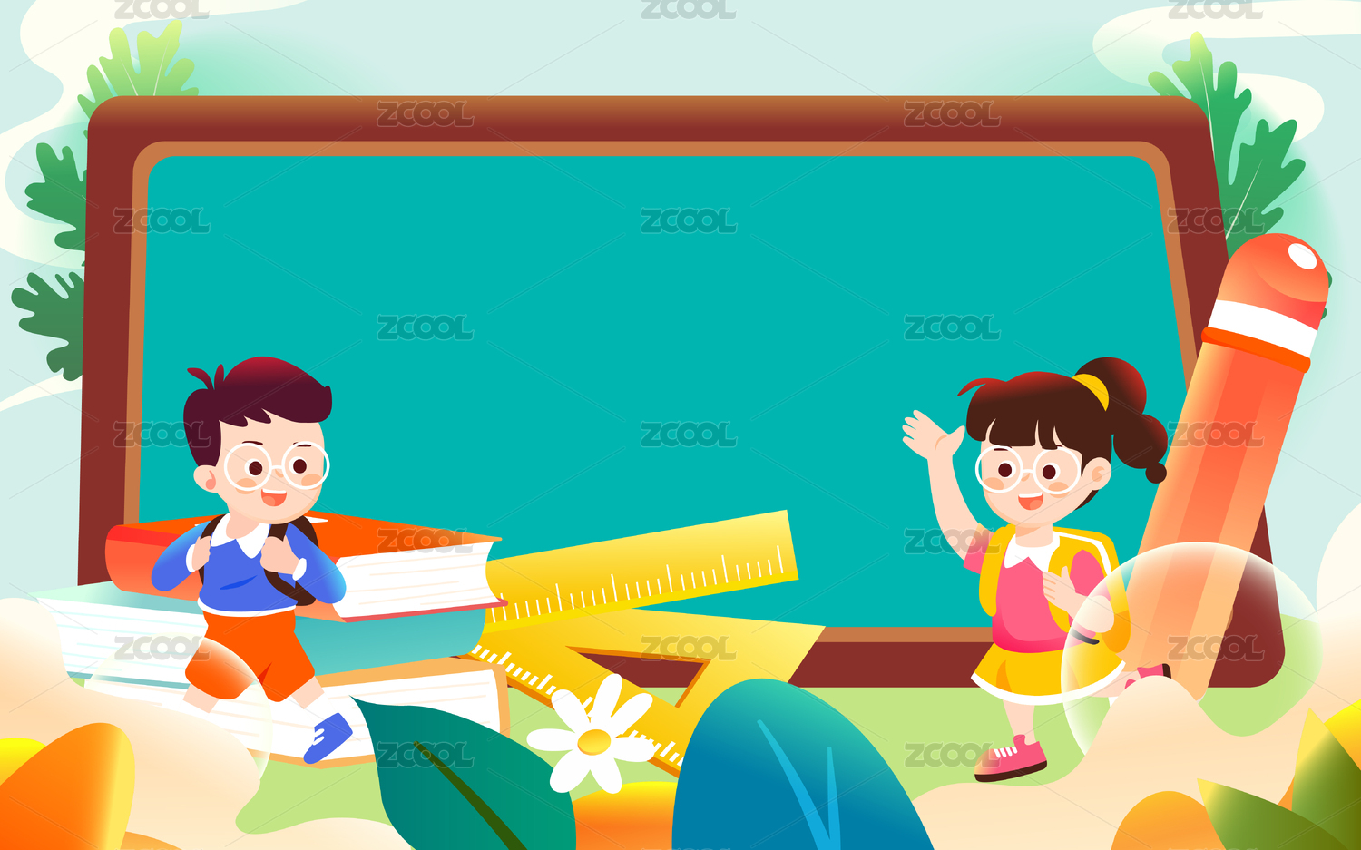 小学生初中生开学矢量分层插画