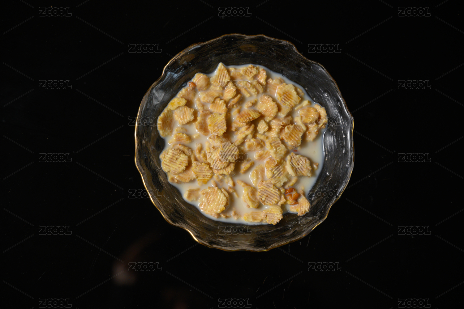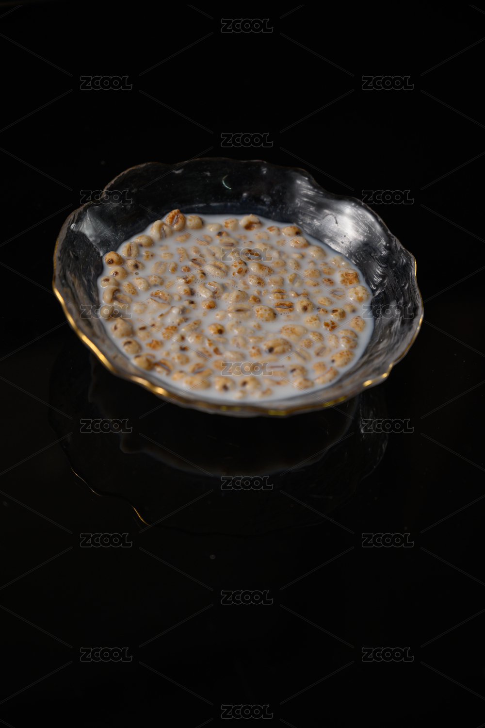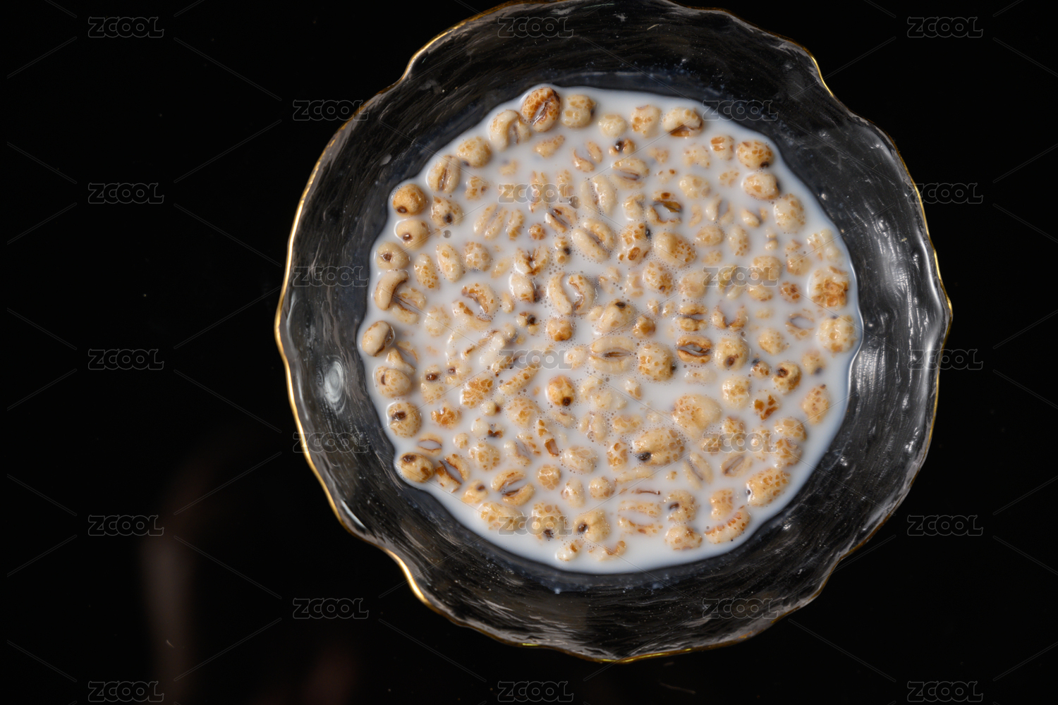 桌面上的碗里的美味可口的牛奶薏米花