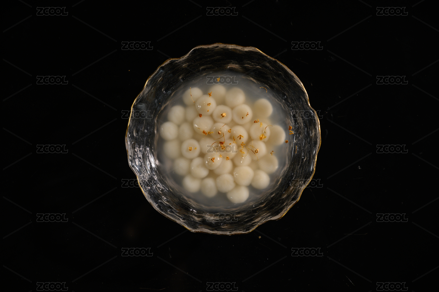 桌面上的碗里的美味可口的桂花凉粉