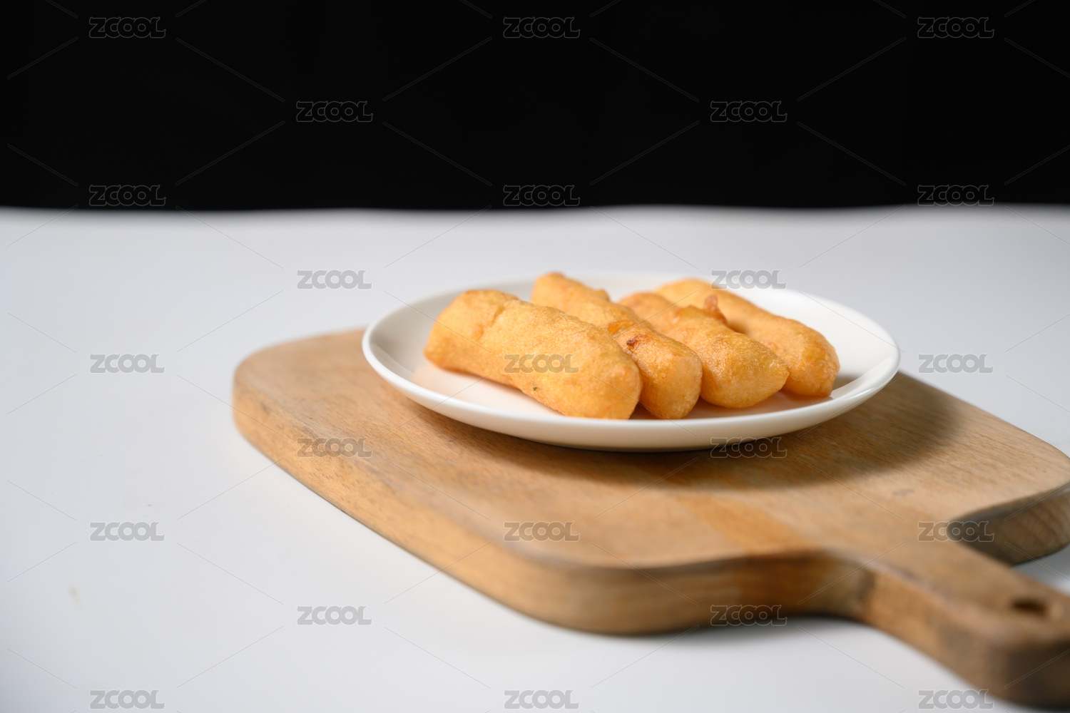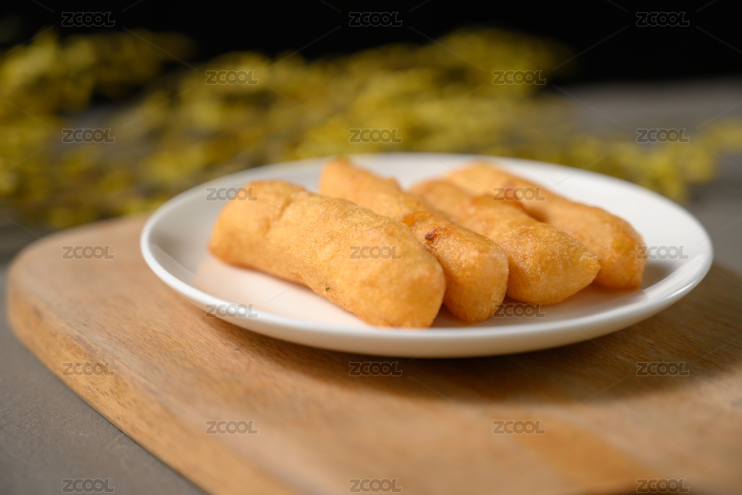 桌面上的盘子里的美味可口的小油条