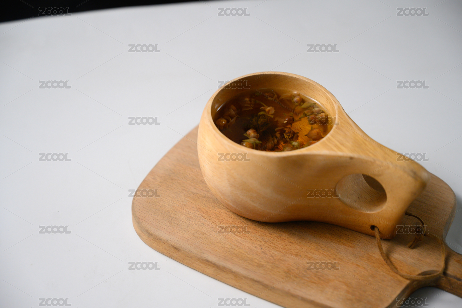 桌面上的杯子里的甘甜可口的辣木籽茶