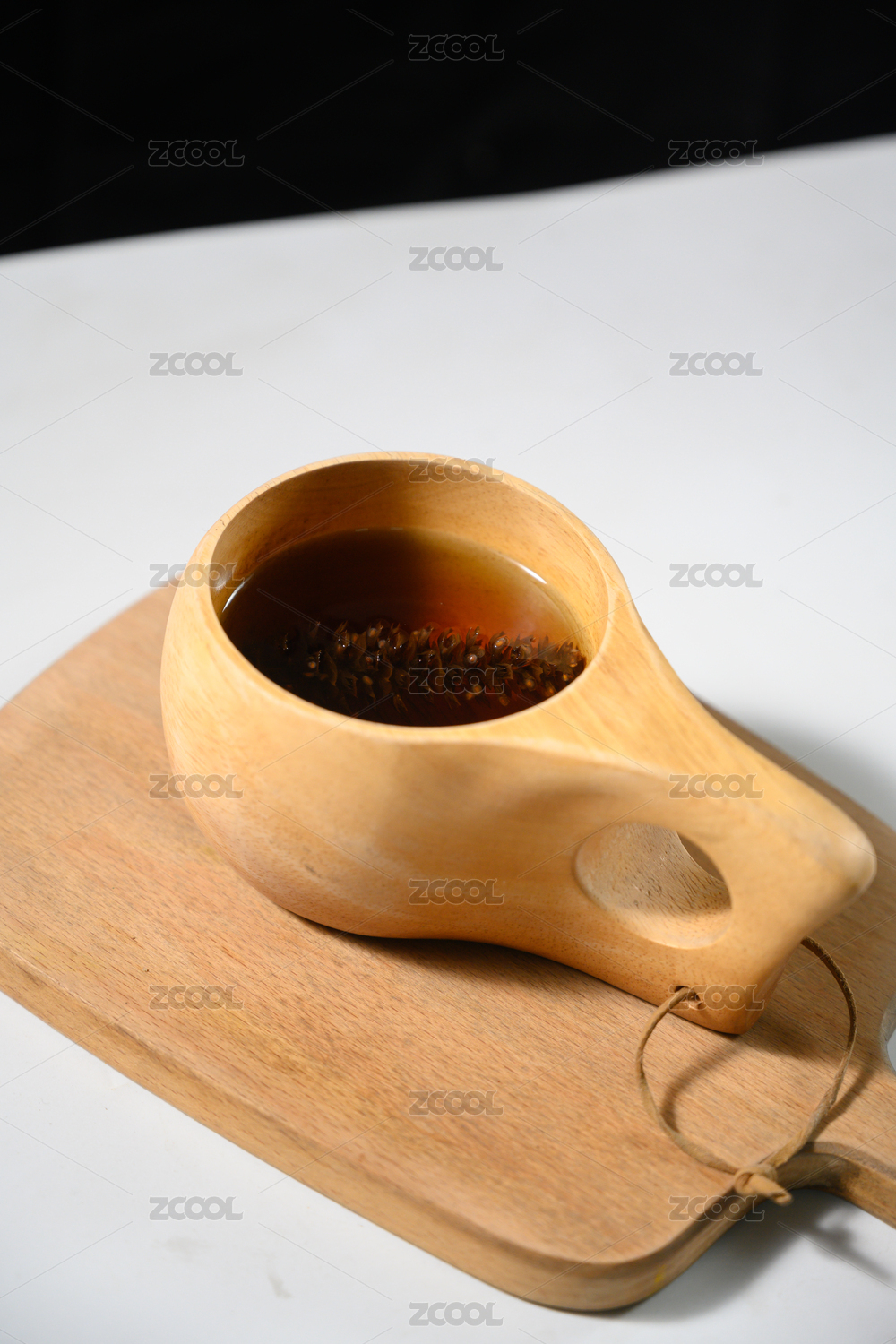 桌面上的杯子里的甘甜可口的夏枯草凉茶