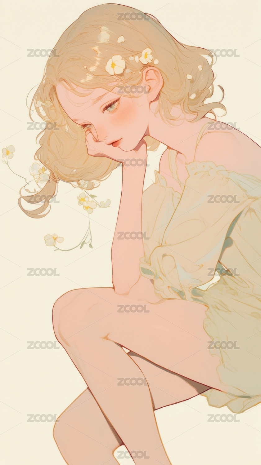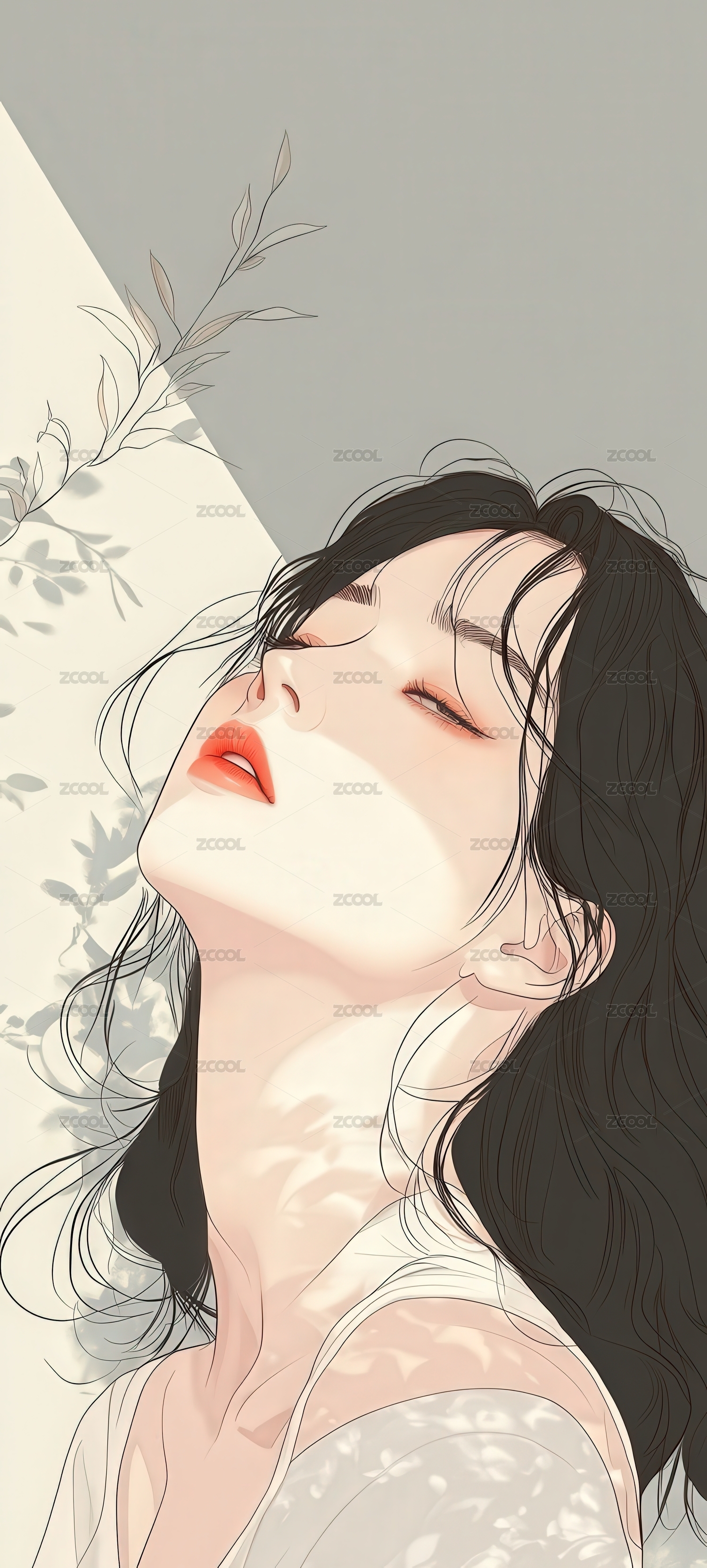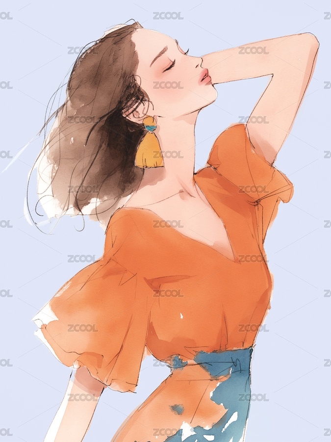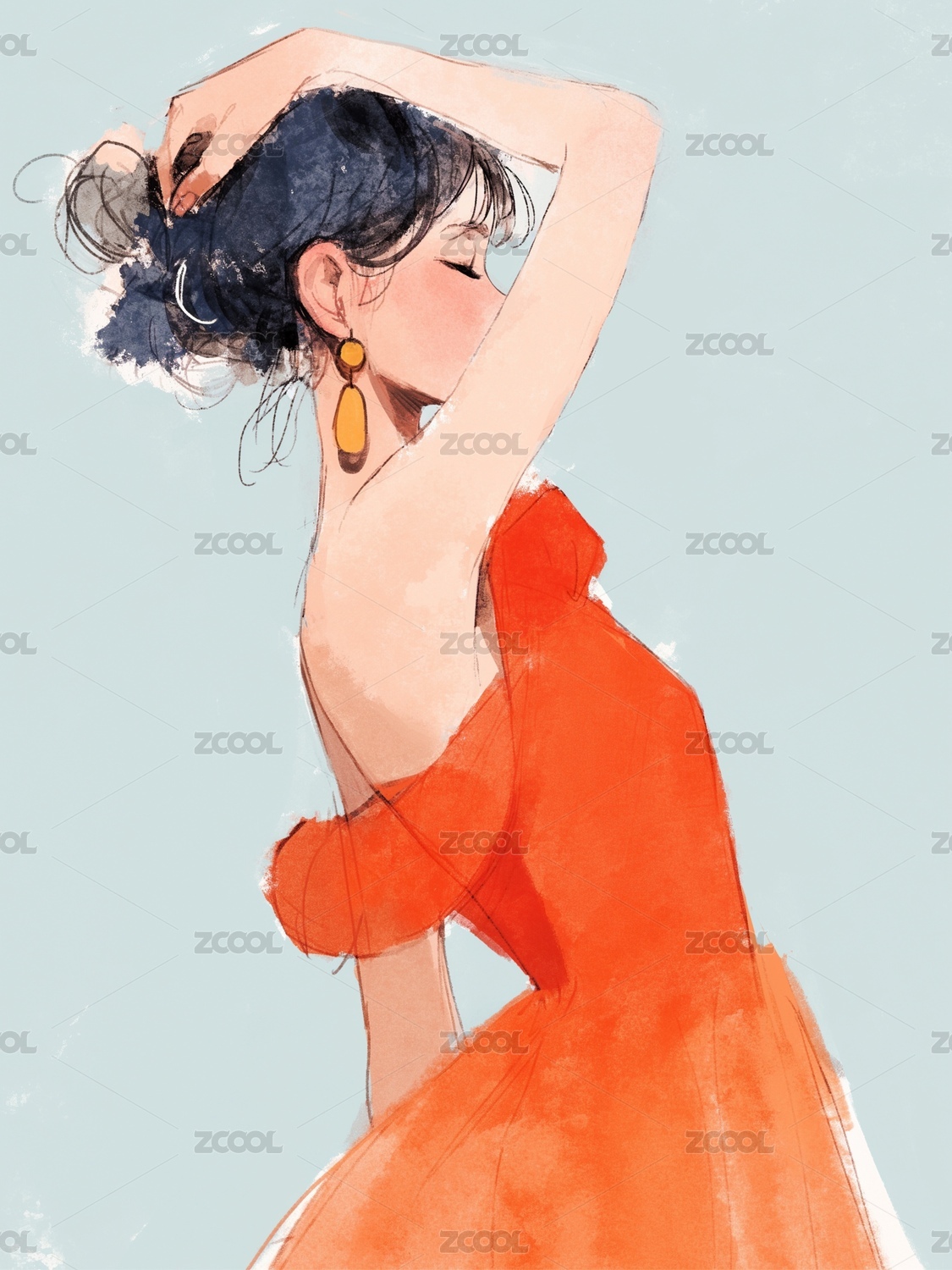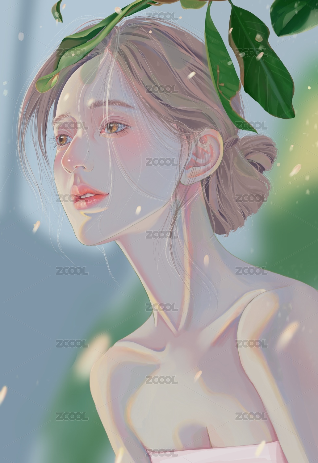 夏天黑头发黄皮肤东方女性头像扁平插画绘画