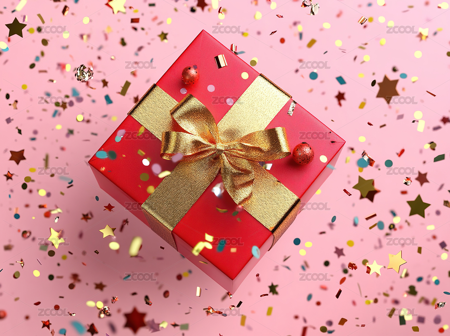 红色礼盒和金色星星