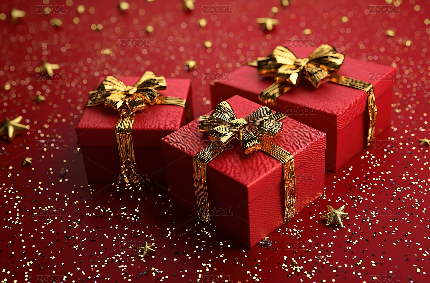 红色礼物盒金蝴蝶结星星